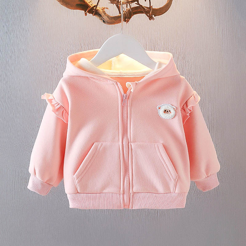 2022 가을과 겨울 새로운 패션 소녀 기모 후드 코트 아기 소녀 캐주얼 따뜻한 의류 어린이 코트스토어 가기