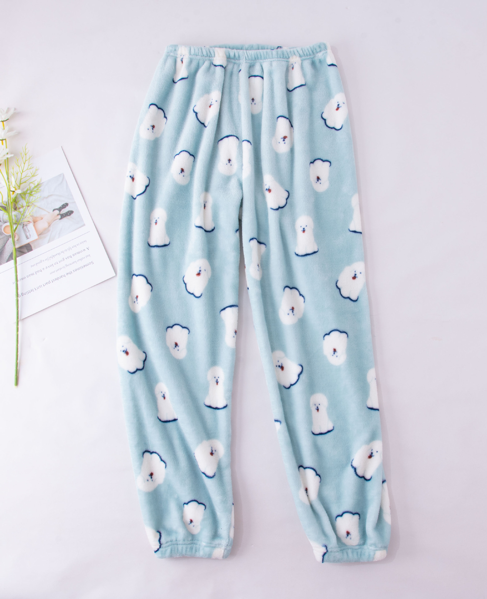 가을과 겨울 요정 따뜻한 바지 게으른 신 바지 두꺼운 따뜻한 플란넬 홈 바지 산호 양털 잠옷 여성 도매