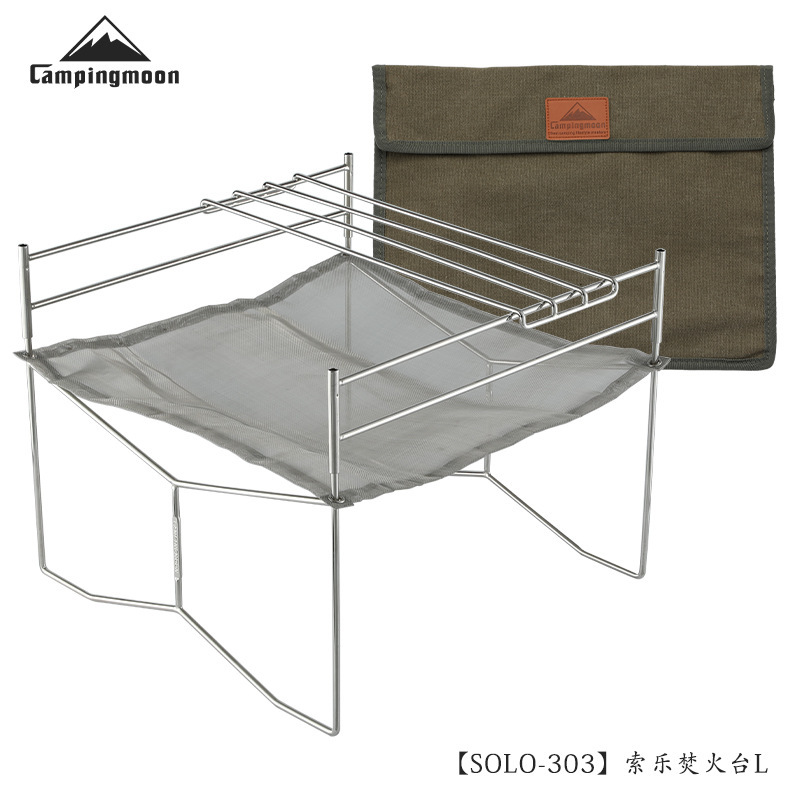 CAMPINGMOON 스테인레스 스틸 Suole 불타는 화재 테이블 L 접이식 베이킹 그물이있는 보관 가방 장착스토어 가기