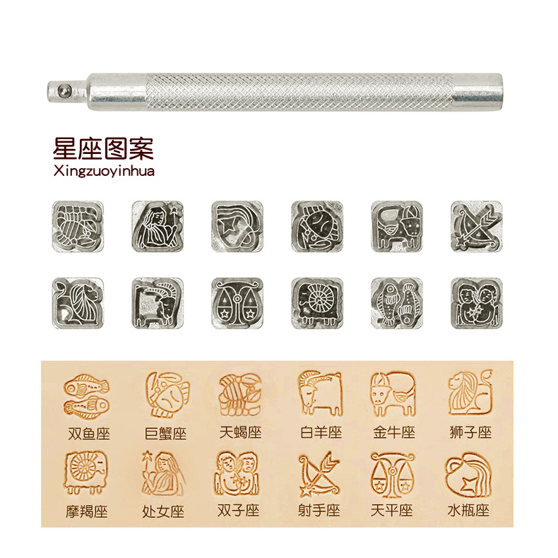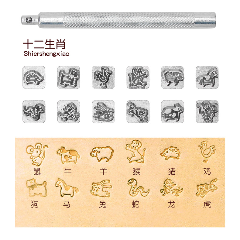가죽 인감 별자리 중국 조디악 Tangcao 인쇄 수제 DIY 가죽 조각 도구 야채 무두질 가죽에 적합스토어 가기