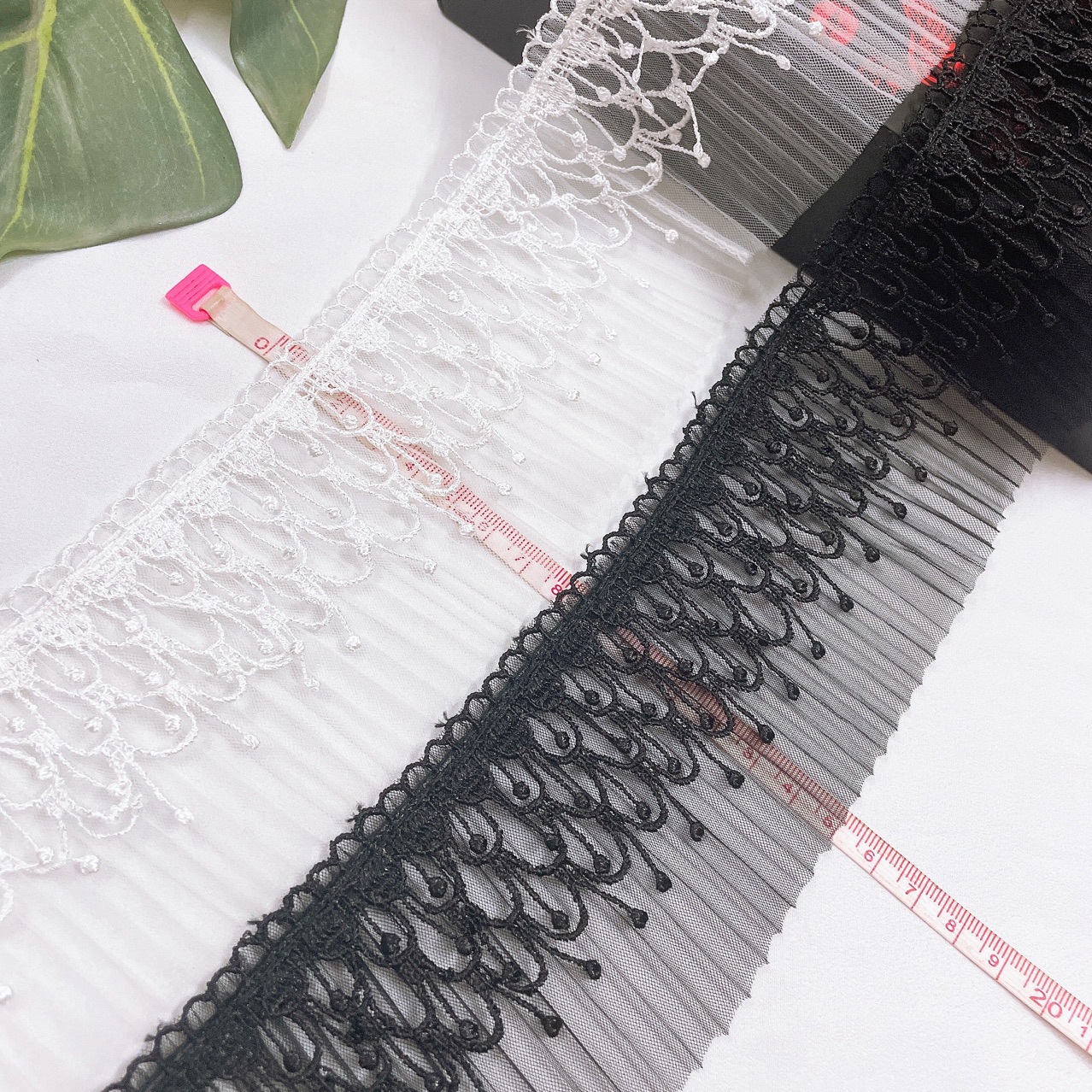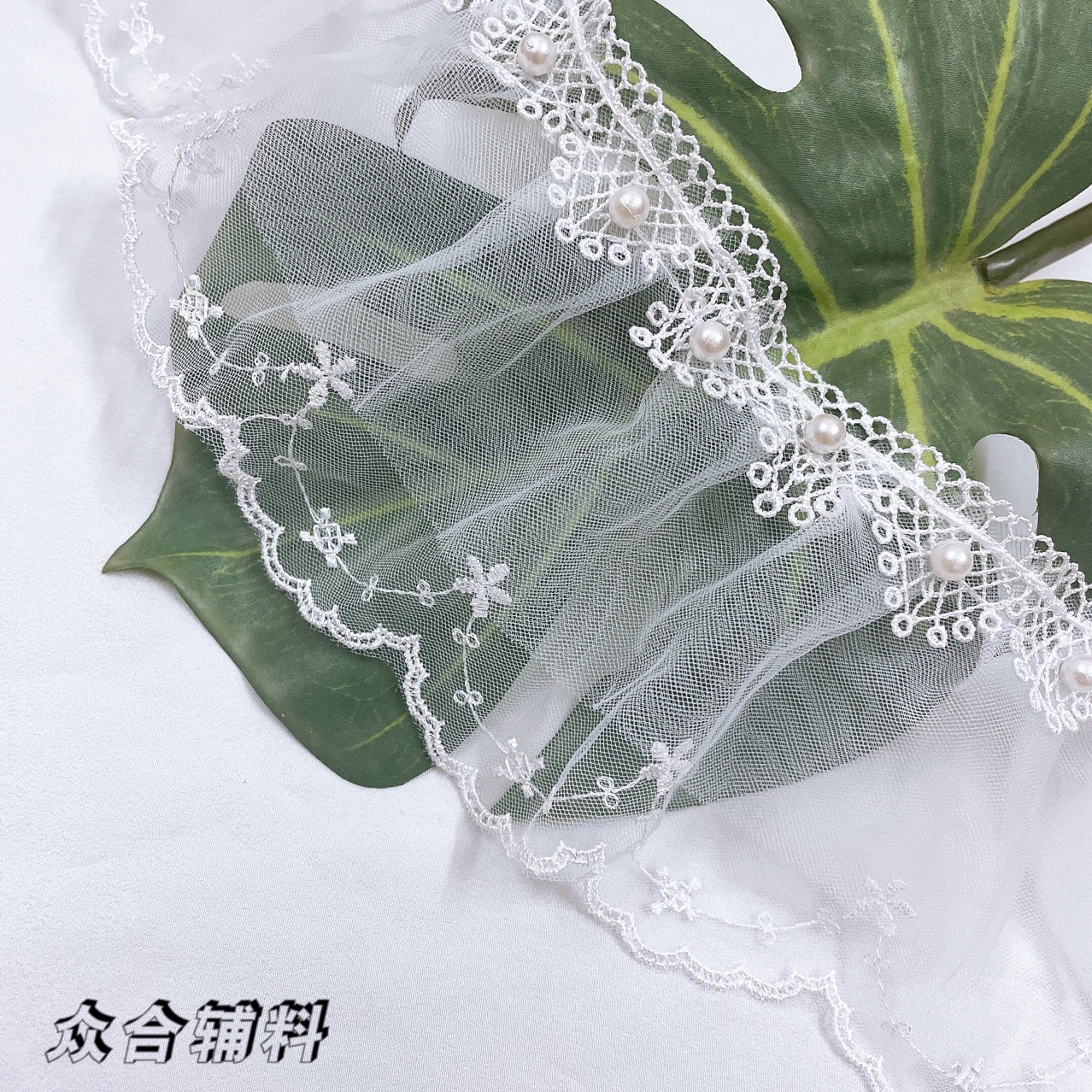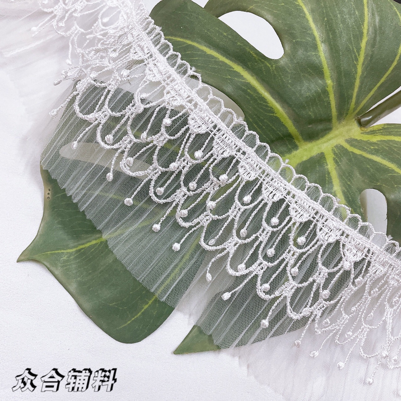 폴리 에스터 레이스 더블 레이어 주름 주름 메쉬 가장자리 레이스 아동복 웨딩 원피스 스커트 커튼 홈 섬유 액세서리 수제 꽃스토어 가기
