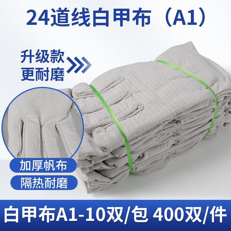 와우 맞춤형 캔버스 장갑 24줄 백색 천 용접 장갑 내마모성 두꺼운 용접 현장 보호 작업 장갑스토어 가기