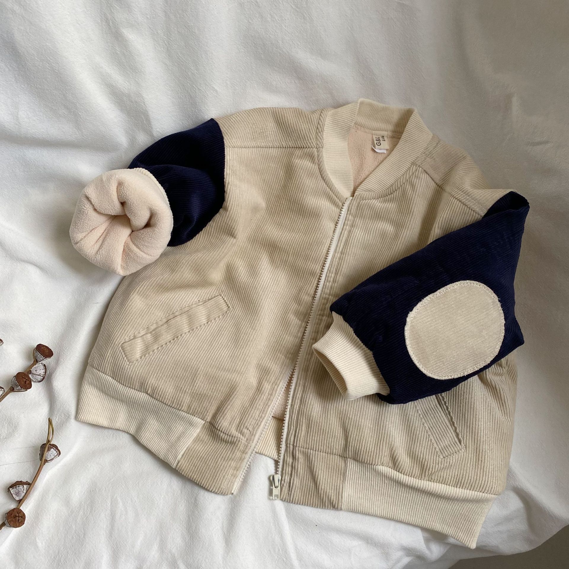 GL-kids 한국 겨울 어린이 라운드 패치 코듀로이 양털 재킷 남성 및 여성용 면 두꺼운 탑스토어 가기