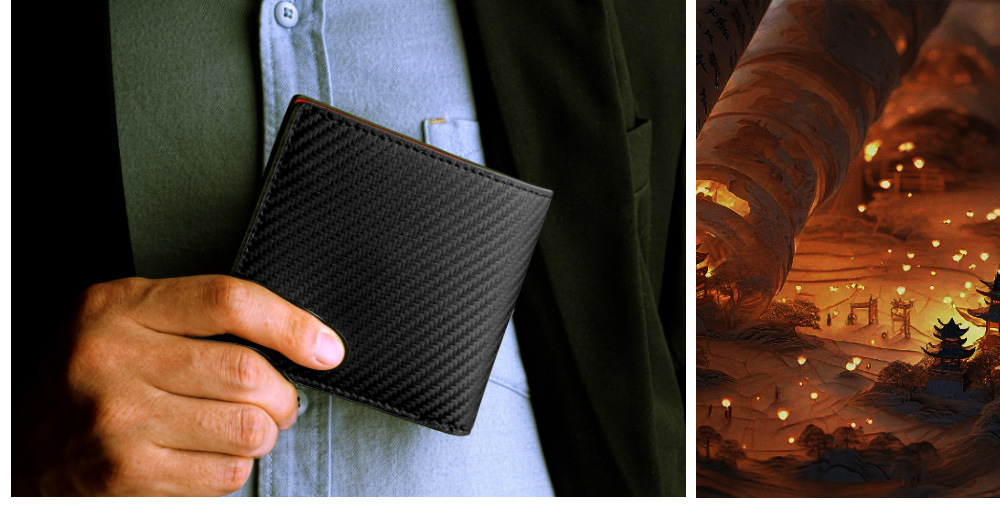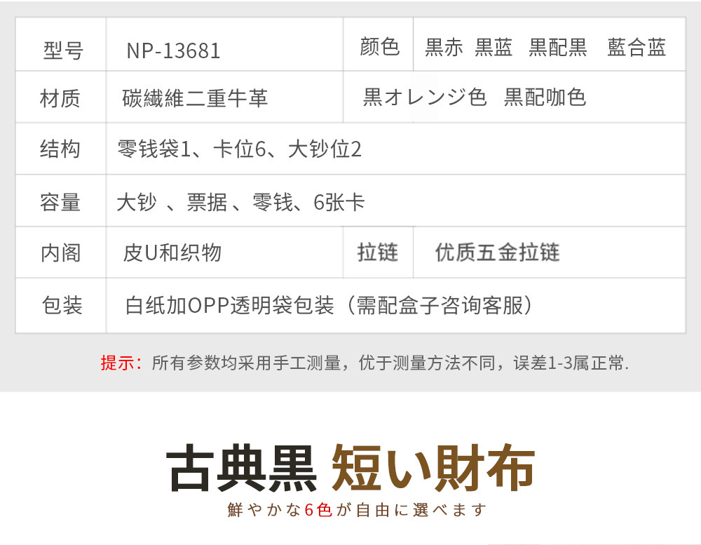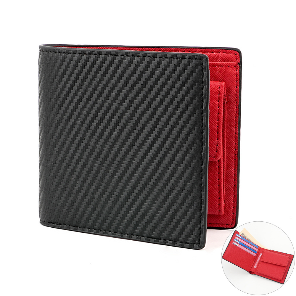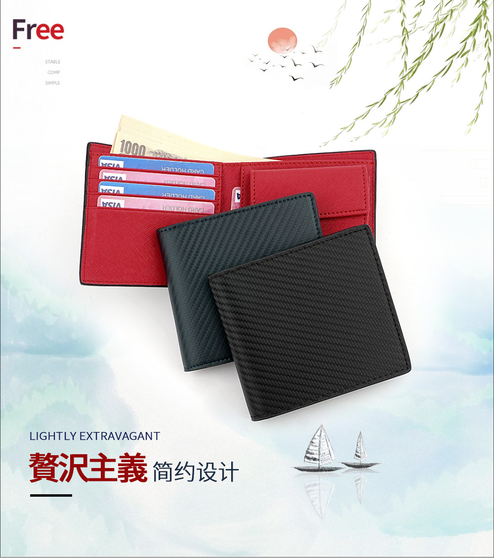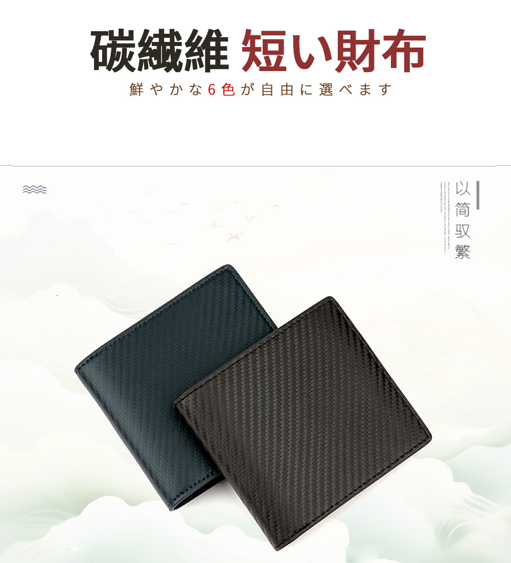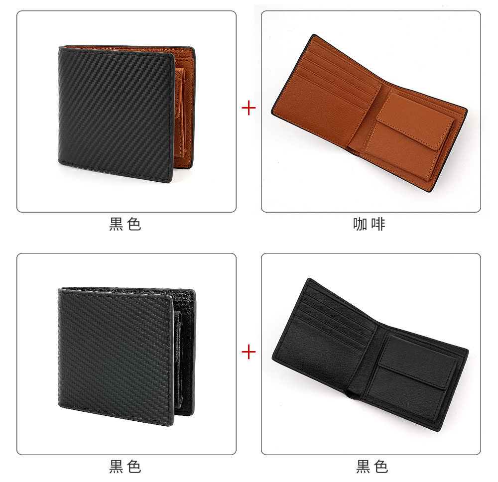碳纤维牛皮 男士对折钱包 現貨,小巧轻便,日本楽天市场、亚马逊热卖,