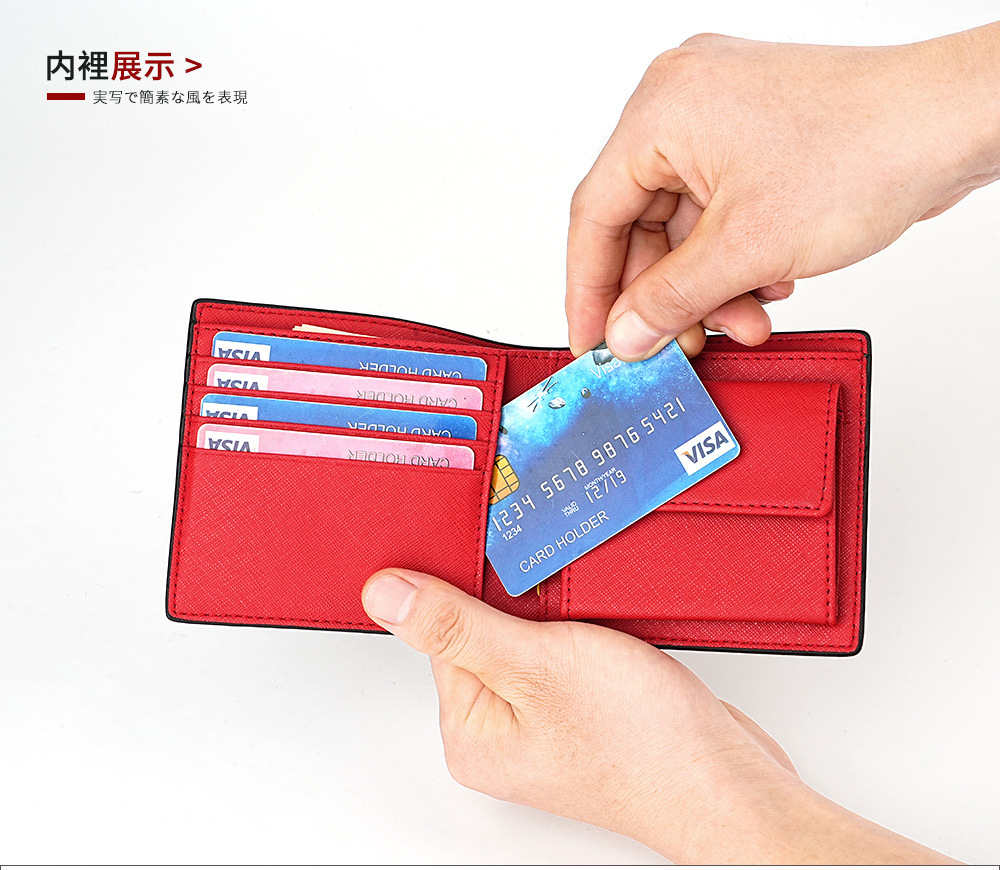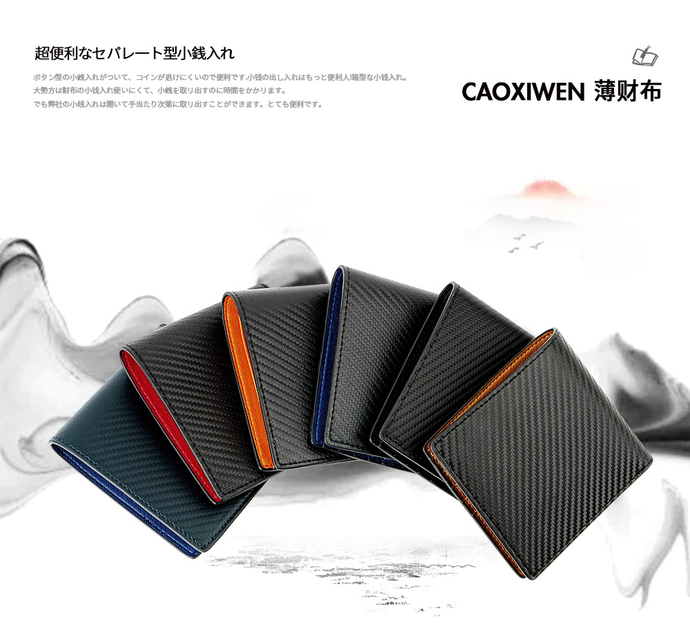 국경 새 일본 아마존 롯데 남성 정품 가죽 접는 지갑 탄소 섬유 짧은 동전 지갑 금융 천스토어 가기