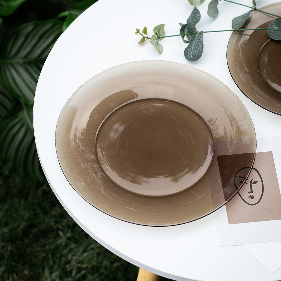 차 유리 접시 디저트 접시 내열 수프 접시 다크 브라운 밥 그릇 가정용 서양 접시 유럽 스타일 식기 전자 레인지
