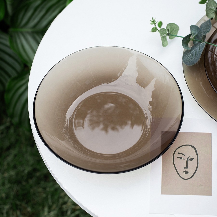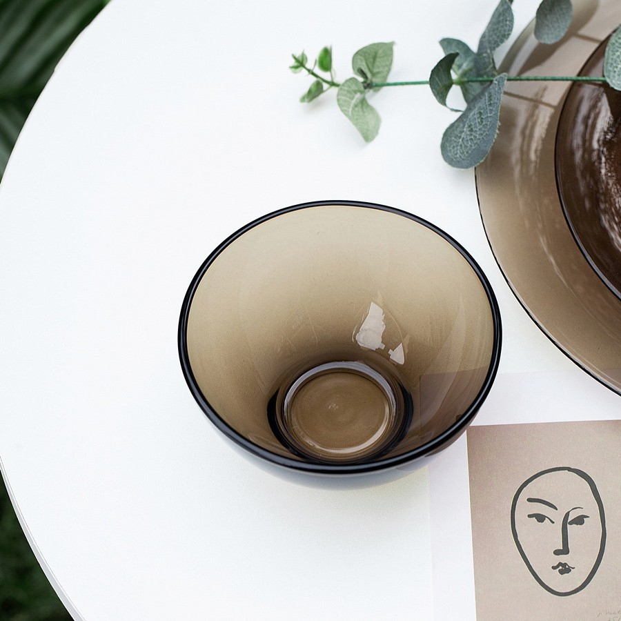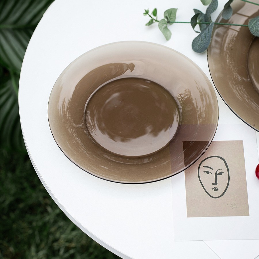 차 유리 접시 디저트 접시 내열 수프 접시 다크 브라운 밥 그릇 가정용 서양 접시 유럽 스타일 식기 전자 레인지스토어 가기