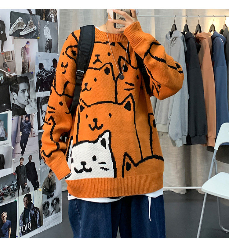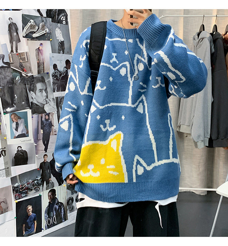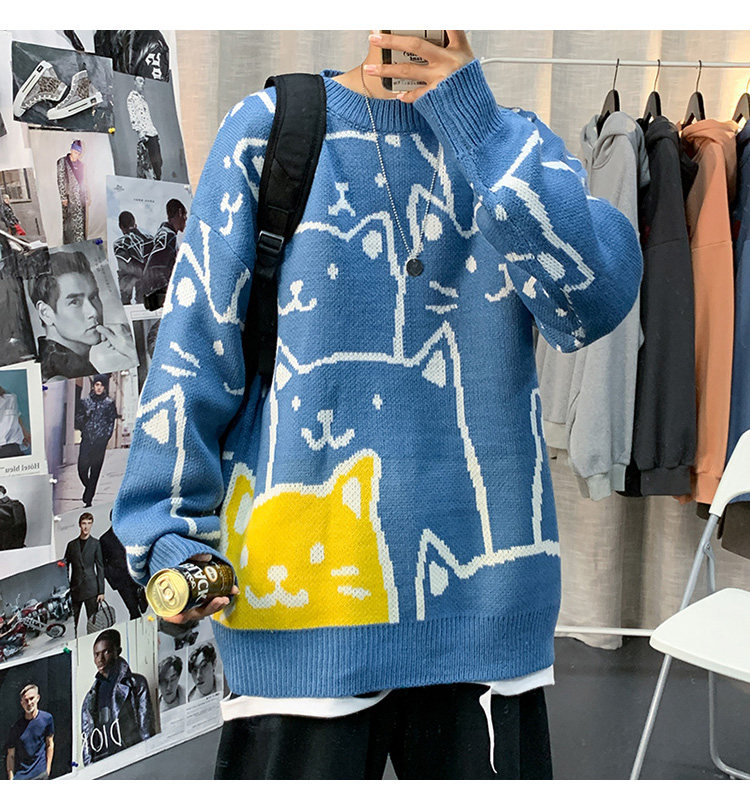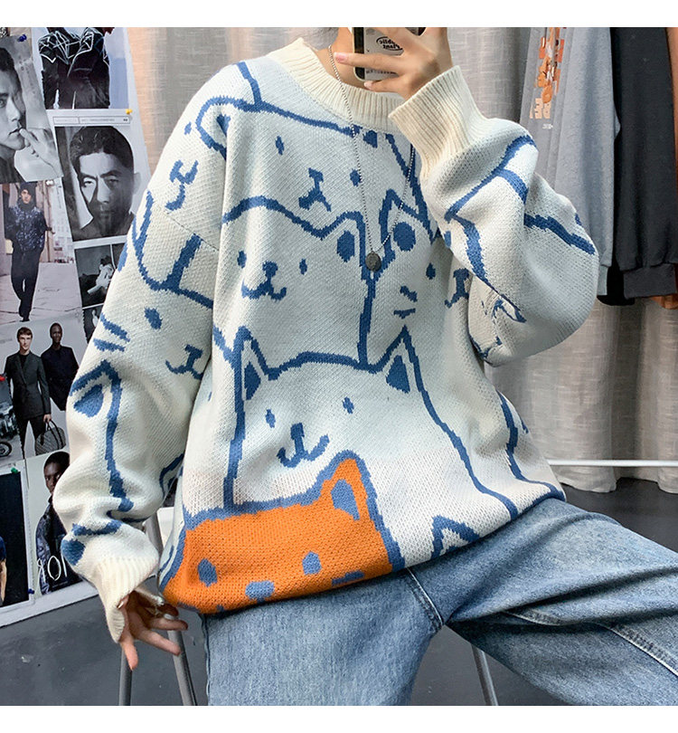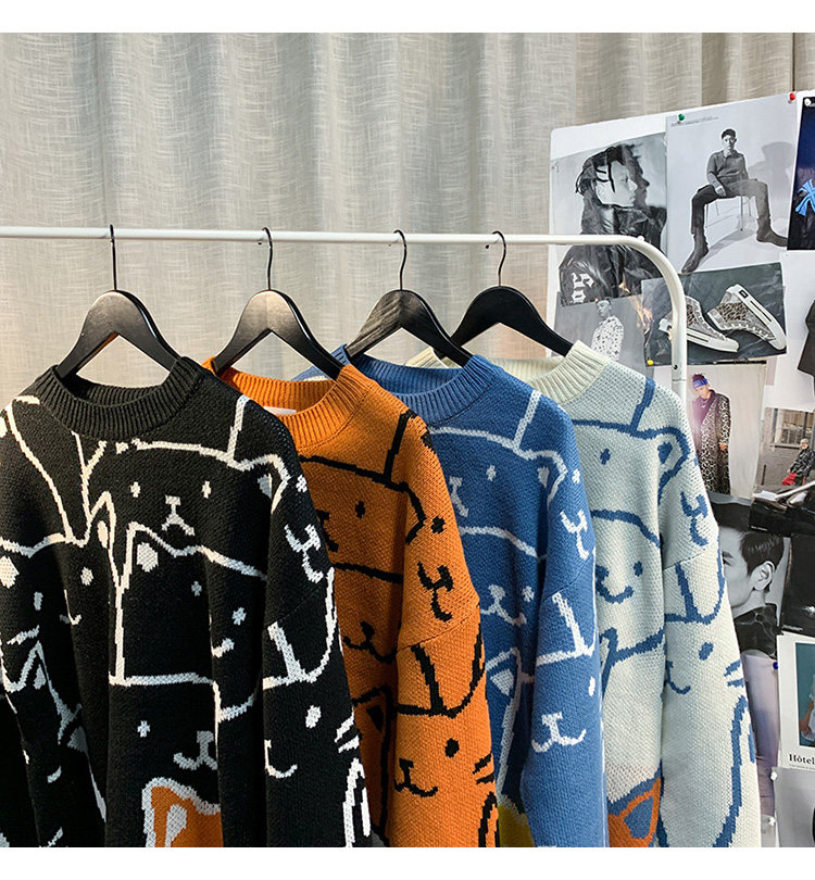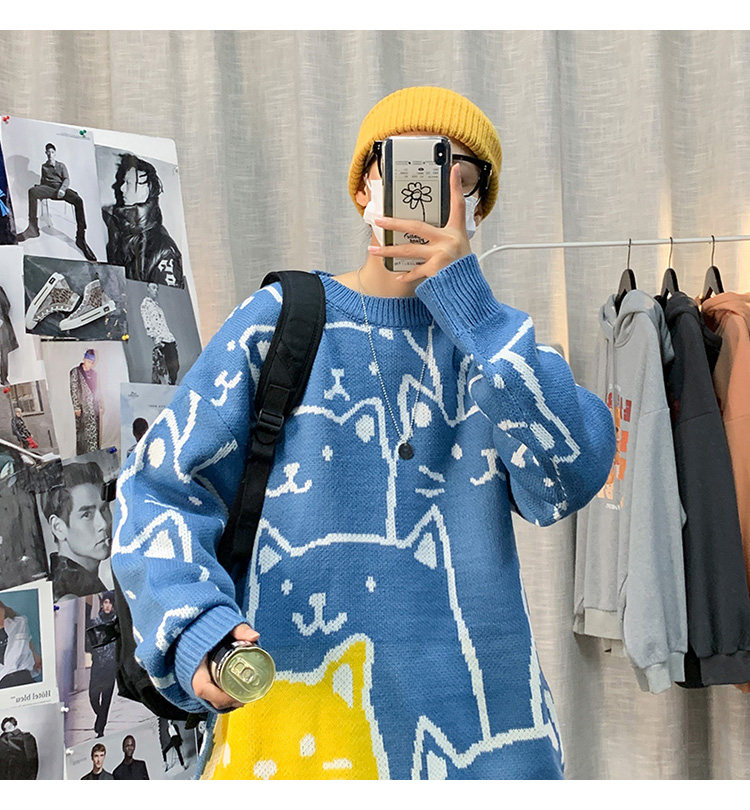 가을과 겨울 스웨터 남자의 in 홍콩 스타일 느슨한 캐주얼 만화 라운드 넥 스웨터 유행 브랜드 학생 잘 생긴 스웨터스토어 가기