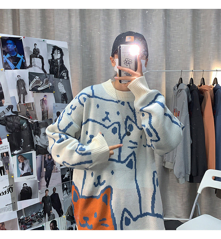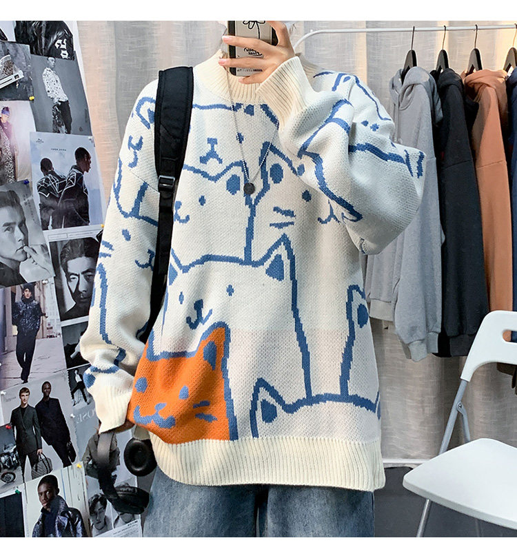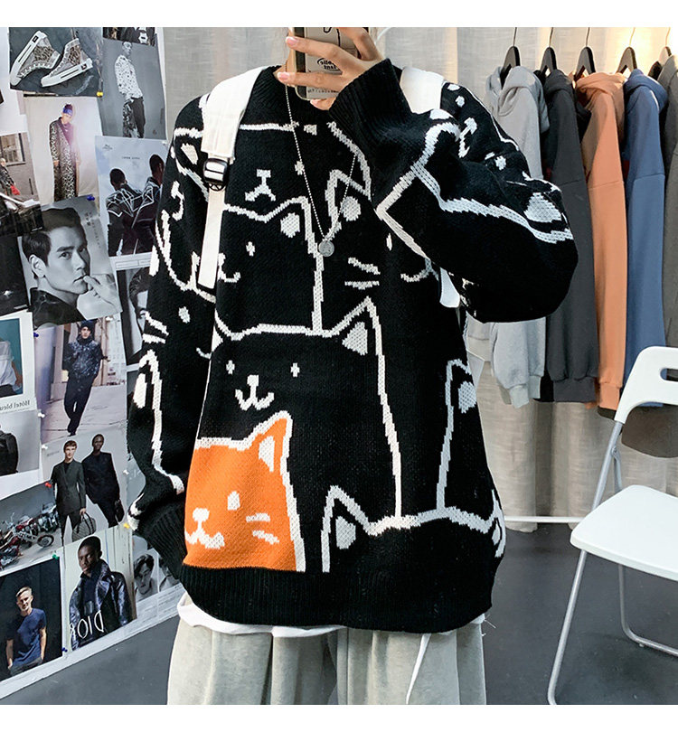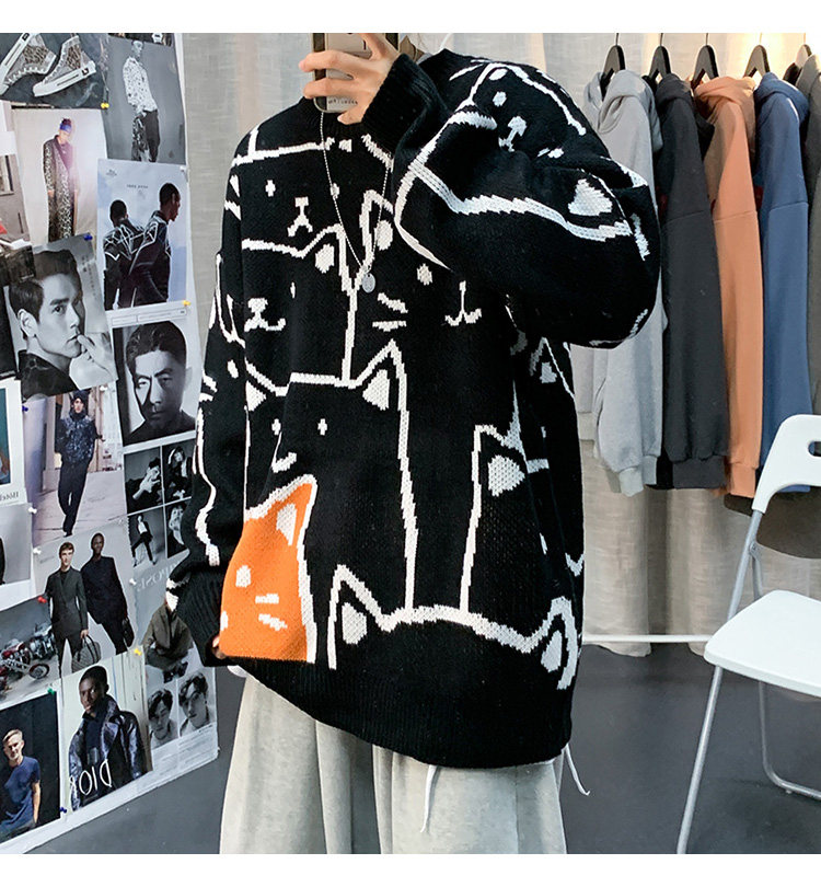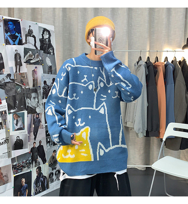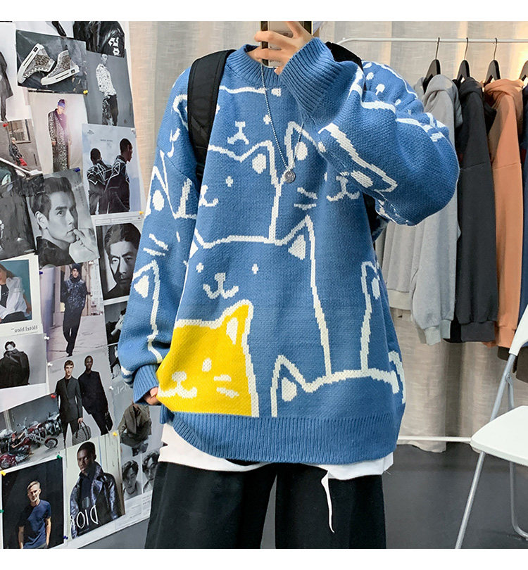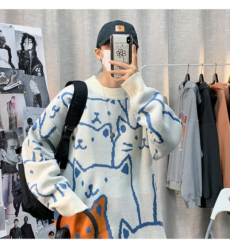 가을과 겨울 스웨터 남자의 in 홍콩 스타일 느슨한 캐주얼 만화 라운드 넥 스웨터 유행 브랜드 학생 잘 생긴 스웨터스토어 가기