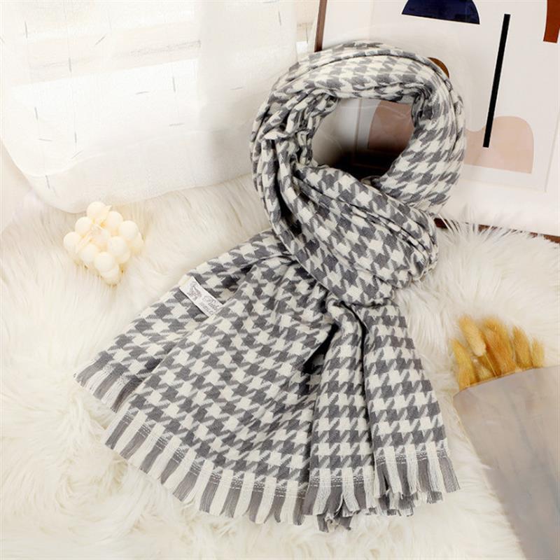 봄 가을 겨울 모조 캐시미어 하운즈투스 여성용 겨울 영국 클래식 이중 사용 흑백 격자 무늬 따뜻한 숄 여성용 대형 스카프스토어 가기