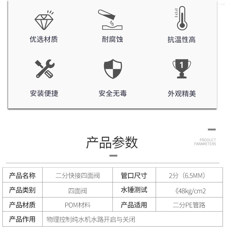 정수기 빠른 연결 4 측 밸브 펌프가없는 정수기 저압 RO 역삼 투 2 분 빠른 연결 카드 프리 커넥터