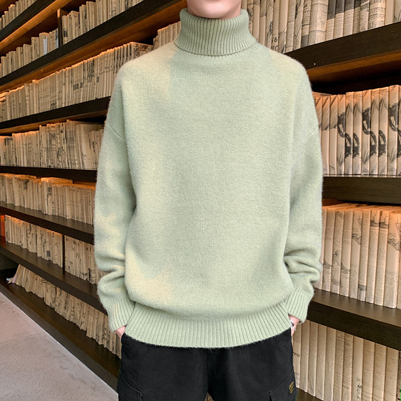 2022 겨울 기모 스웨터 남자의 두꺼운 따뜻한 단색 하이 넥 베이스 셔츠 십대 니트 탑스토어 가기
