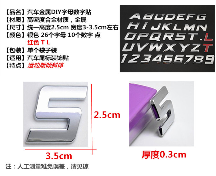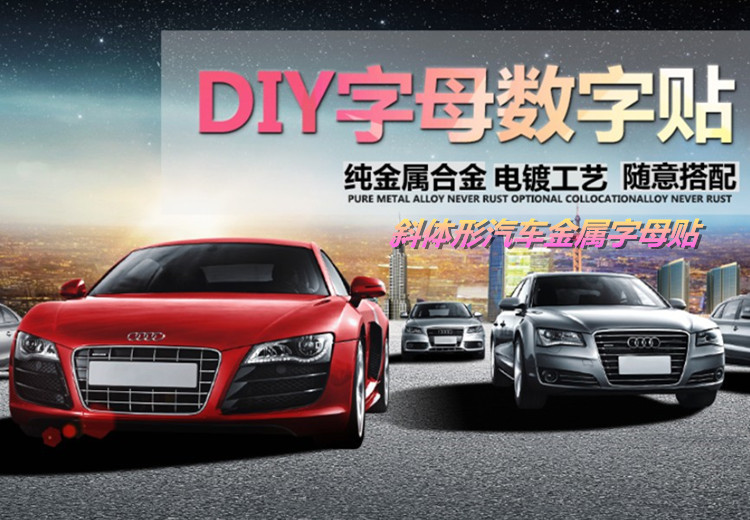 새로운 스타일 이탤릭 자동차 3D 알파벳 자동차 스티커 영어 DIY 영숫자 금속 자동차 바디 스티커 워드 마크