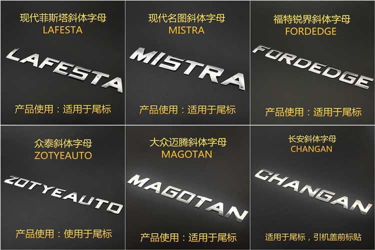 새로운 스타일 이탤릭 자동차 3D 알파벳 자동차 스티커 영어 DIY 영숫자 금속 자동차 바디 스티커 워드 마크스토어 가기