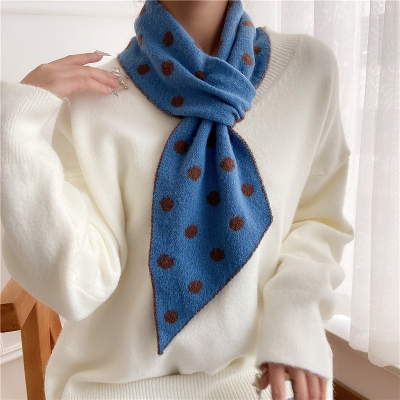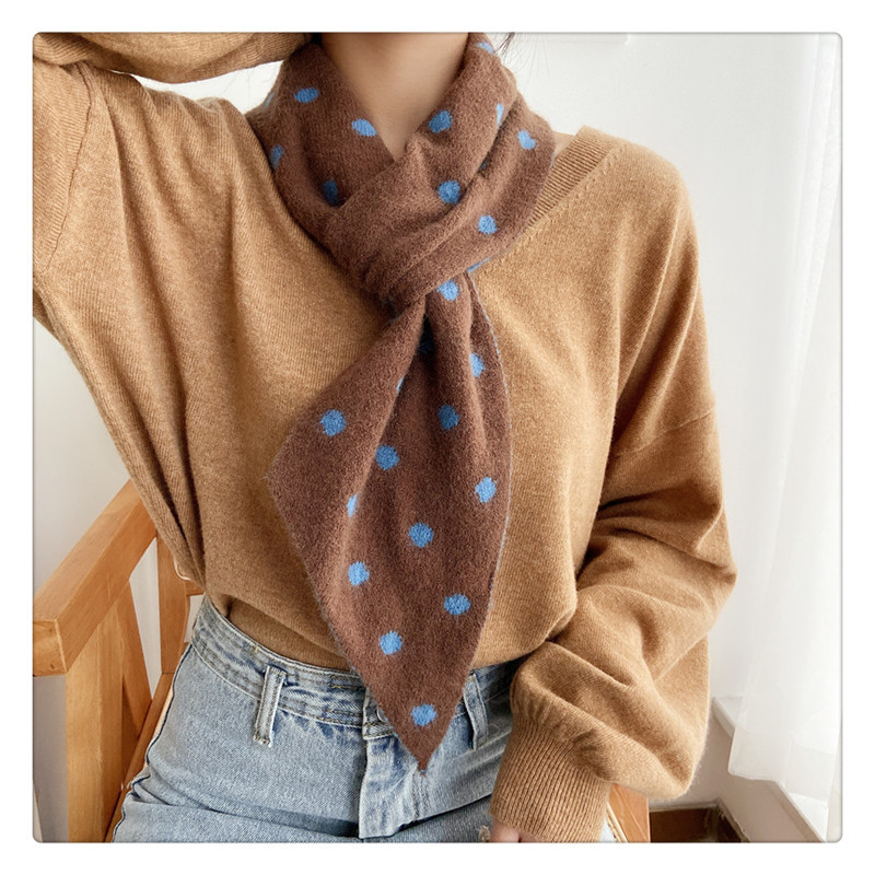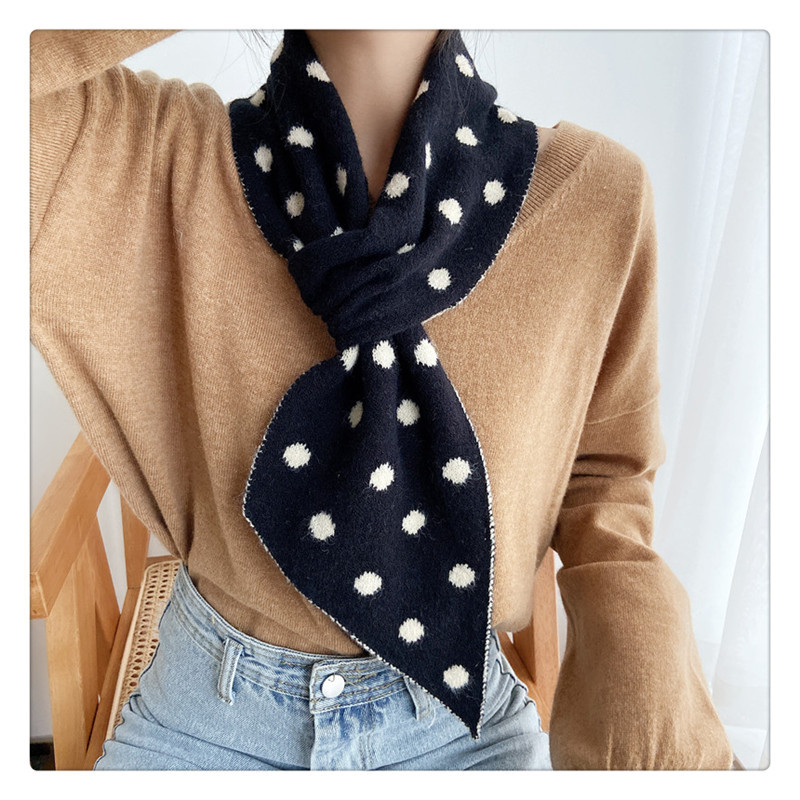 게으른 간단한 작은 스카프 여성의 가을과 겨울 웨이브 도트 니트 따뜻한 이중 목적 스카프 목 보호 스카프 가을 패션스토어 가기