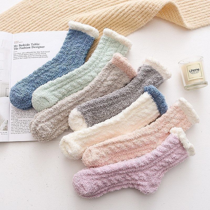 산호 양털 따뜻한 양말 여자의 기모 두꺼운 중간 길이 양말 가을과 겨울 가정 겨울 달 양말 바닥 수건 양말스토어 가기