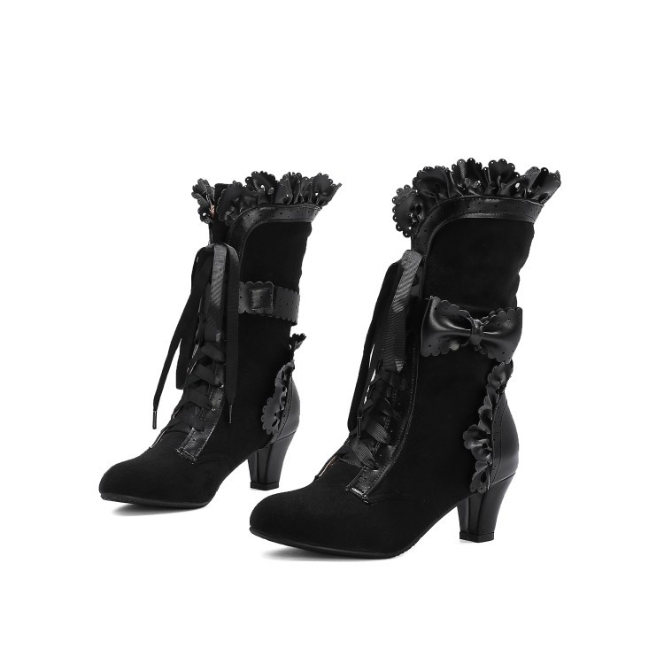 2021 가을 새로운 대외 무역 국경 여성 부츠 주름 활 기사 부츠 리본 짧은 부츠 40-43 대형 부츠