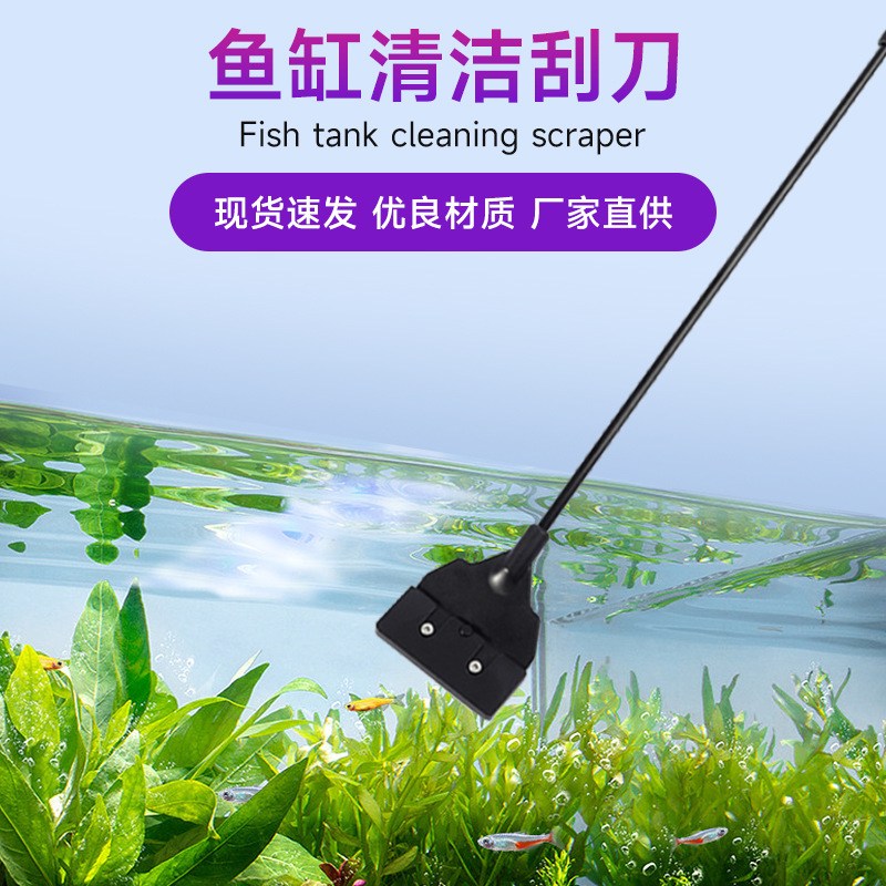 어항 청소 스크레이퍼는 손잡이를 확장 할 수 있습니다 스테인레스 스틸 평면 스크레이퍼 어항 조류 청소 도구 긁기 조류 칼