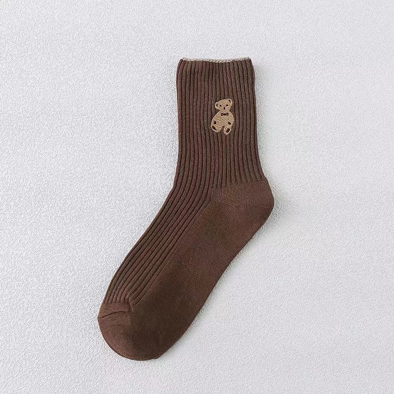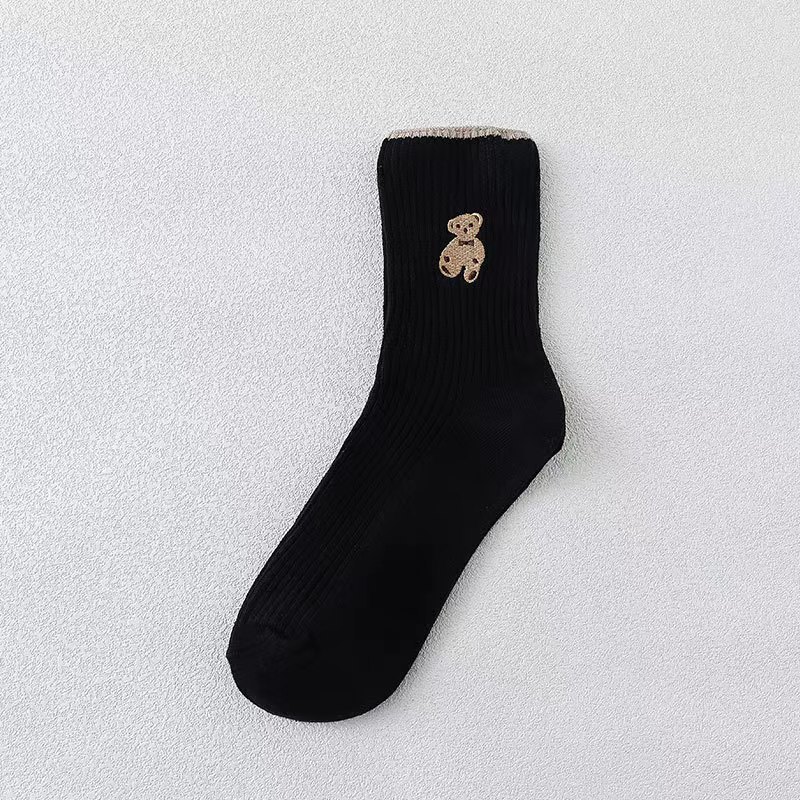 양말 여성의 가을과 겨울 폭발 더블 바늘 자수 곰 양말 중간 배럴 스트라이프 여성의면 양말 유행 일본 스택 양말스토어 가기