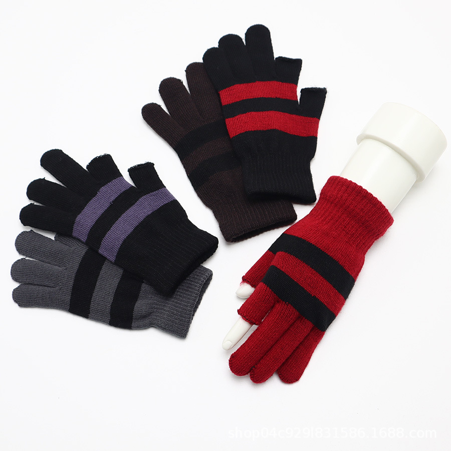 운전, 사이클링, 쓰기, 타이핑, 감기 보호 및 보온 유지를위한 별도의 손가락 니트 장갑과 일치하는 남성과 여성 가을과 겨울 색상 용 두 손가락 장갑스토어 가기