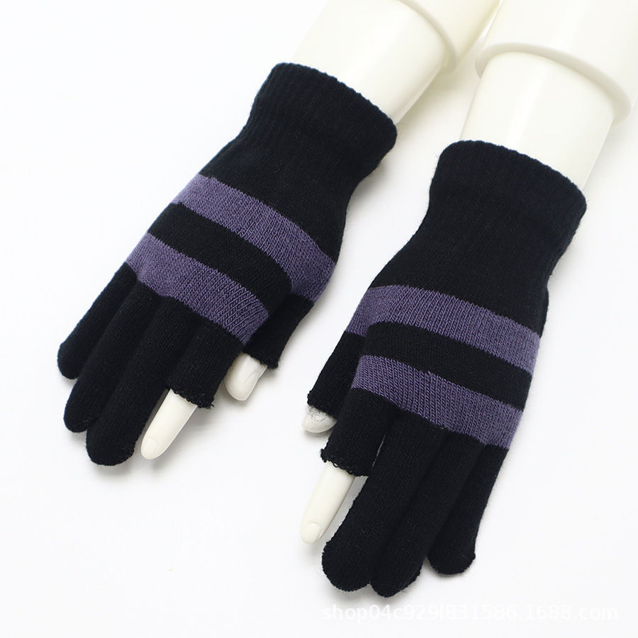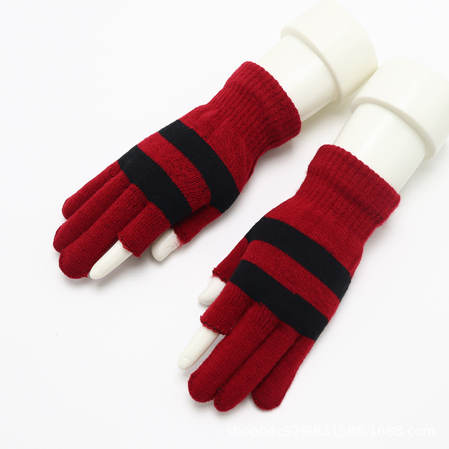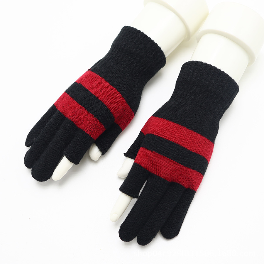 운전, 사이클링, 쓰기, 타이핑, 감기 보호 및 보온 유지를위한 별도의 손가락 니트 장갑과 일치하는 남성과 여성 가을과 겨울 색상 용 두 손가락 장갑