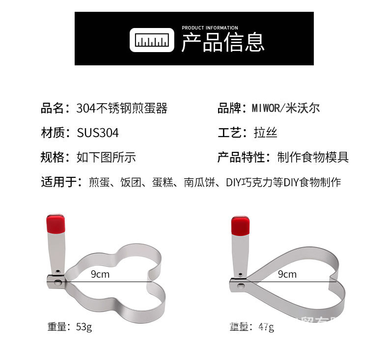 스테인레스 스틸 304 오믈렛 몰드 오믈렛 데친 계란 모델 오믈렛 사랑 모양의 둥근 주먹밥 모델 DIY