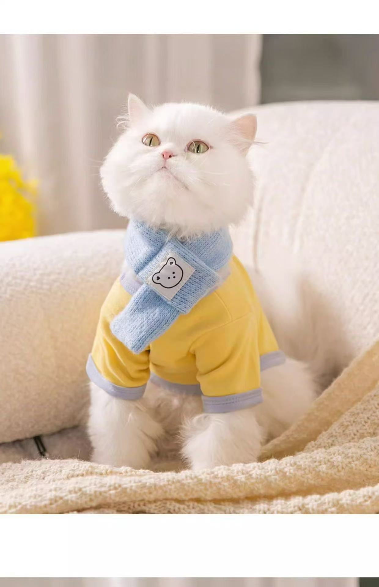 • 노란색 스웨트셔츠에는 스카프가 함께 제공됩니다.