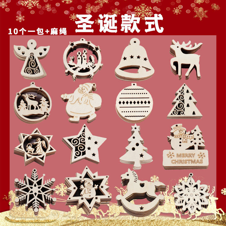 크리스마스 우드 칩 매달려 조각 공예 홈 장식 선물 액세서리 창조적 인 나라 나무 크리스마스 트리 펜던트스토어 가기