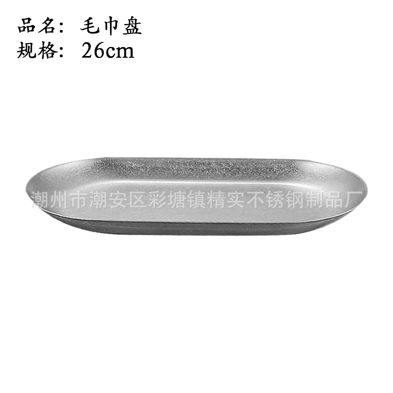 빈티지 Qingfang 디너 플레이트 북유럽 낡은 산업 스타일 스테인레스 스틸 플레이트 야외 캠핑 서양식 식기 접시