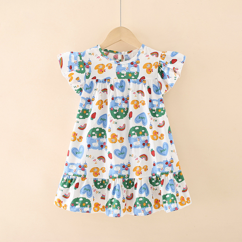 봄 달콤한 중소 어린이 여아 아동복 만화 인쇄 면 A-라인 스커트 원피스 어린이 원피스 머리카락 세대스토어 가기