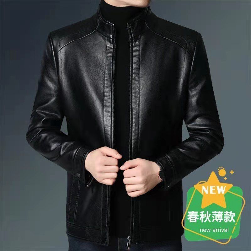 Haining 중년 및 노인 남성용 부드러운 가죽 자켓 남성용 봄과 가을 싱글 라이닝 재킷 2022 새로운 중년 아빠 가죽 자켓