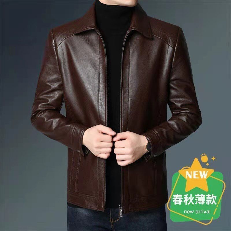 Haining 중년 및 노인 남성용 부드러운 가죽 자켓 남성용 봄과 가을 싱글 라이닝 재킷 2022 새로운 중년 아빠 가죽 자켓스토어 가기