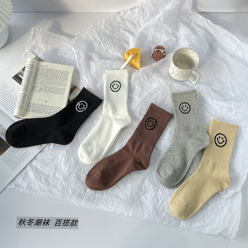 Ziyang 가을과 겨울 새로운 중형 양말 귀여운 웃는 양말 한국 INS 유행 양말 일본 양말 면 양말 학생 양말 도매스토어 가기