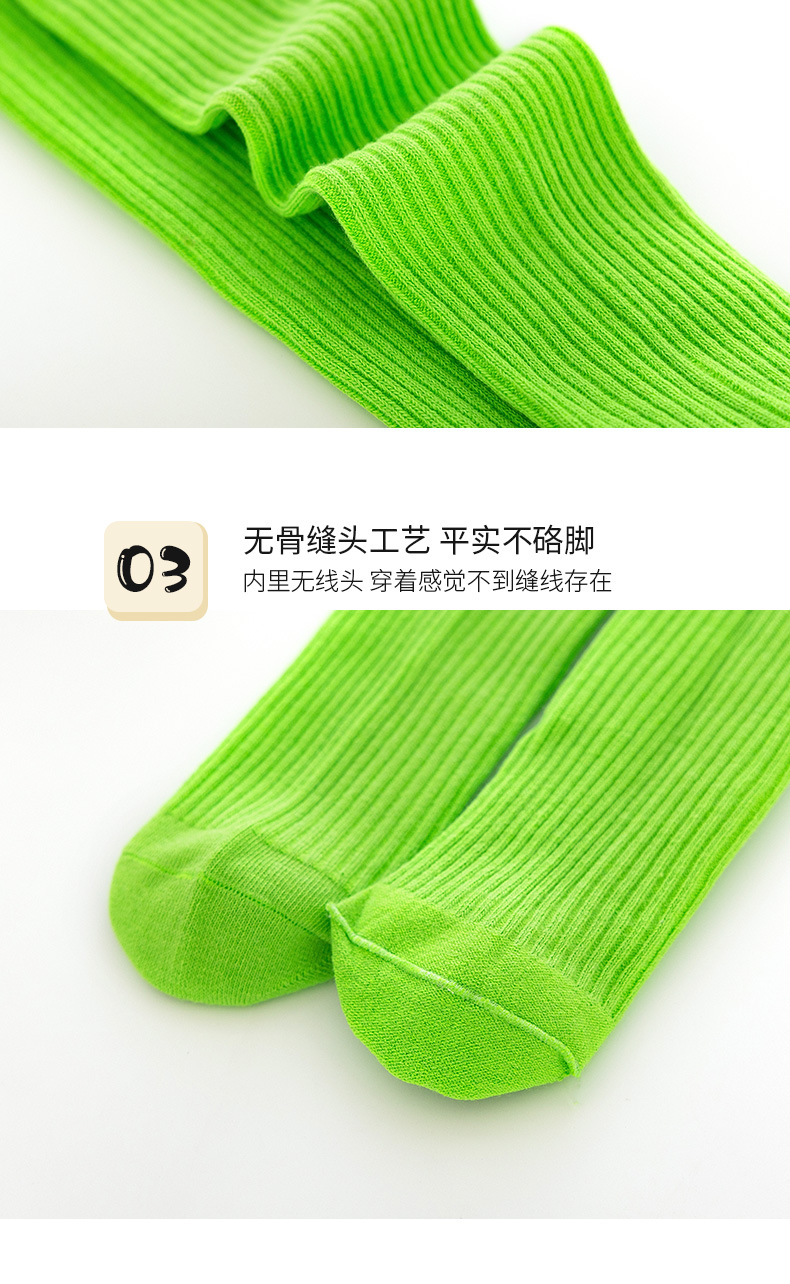 밝은 색 어린이 양말 형광 색 소년과 소녀 더미 양말 이중 바늘 송아지 양말 직선 긴 양말 봄과 가을 부모 양말