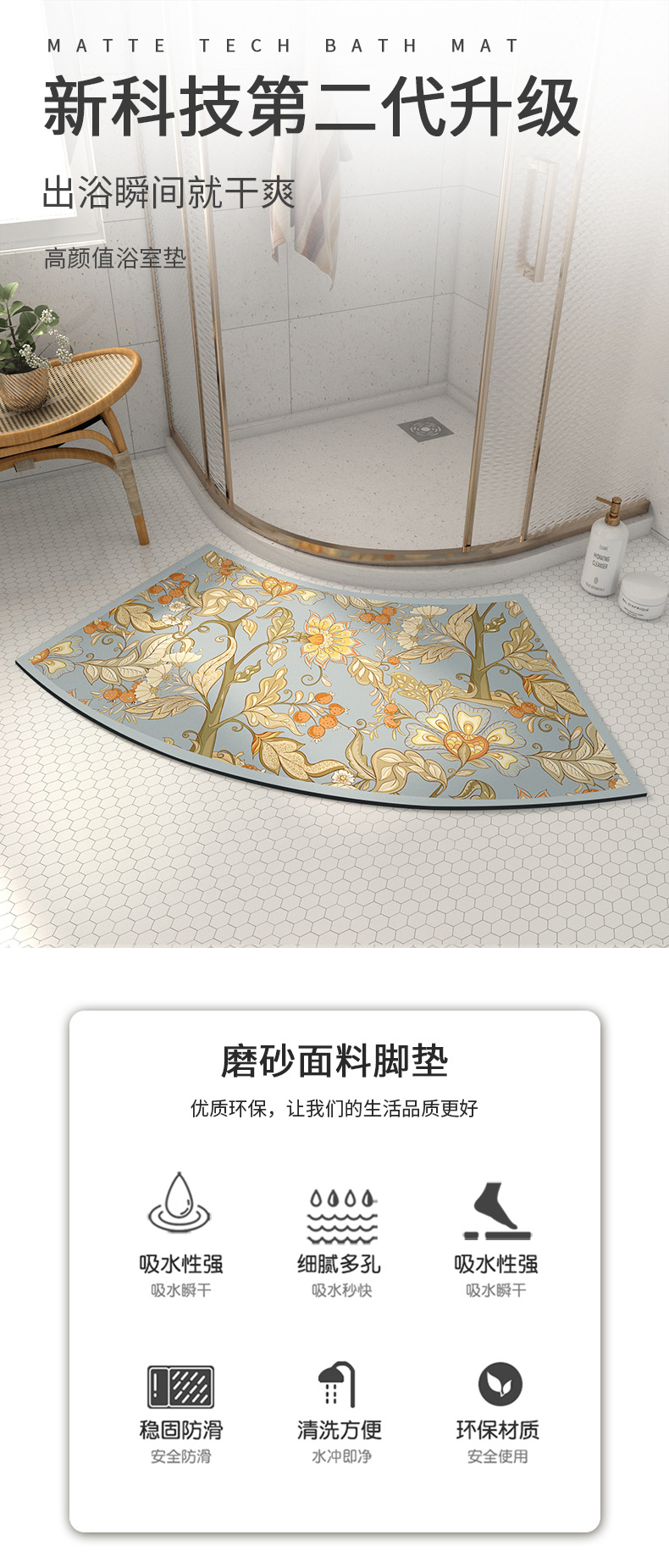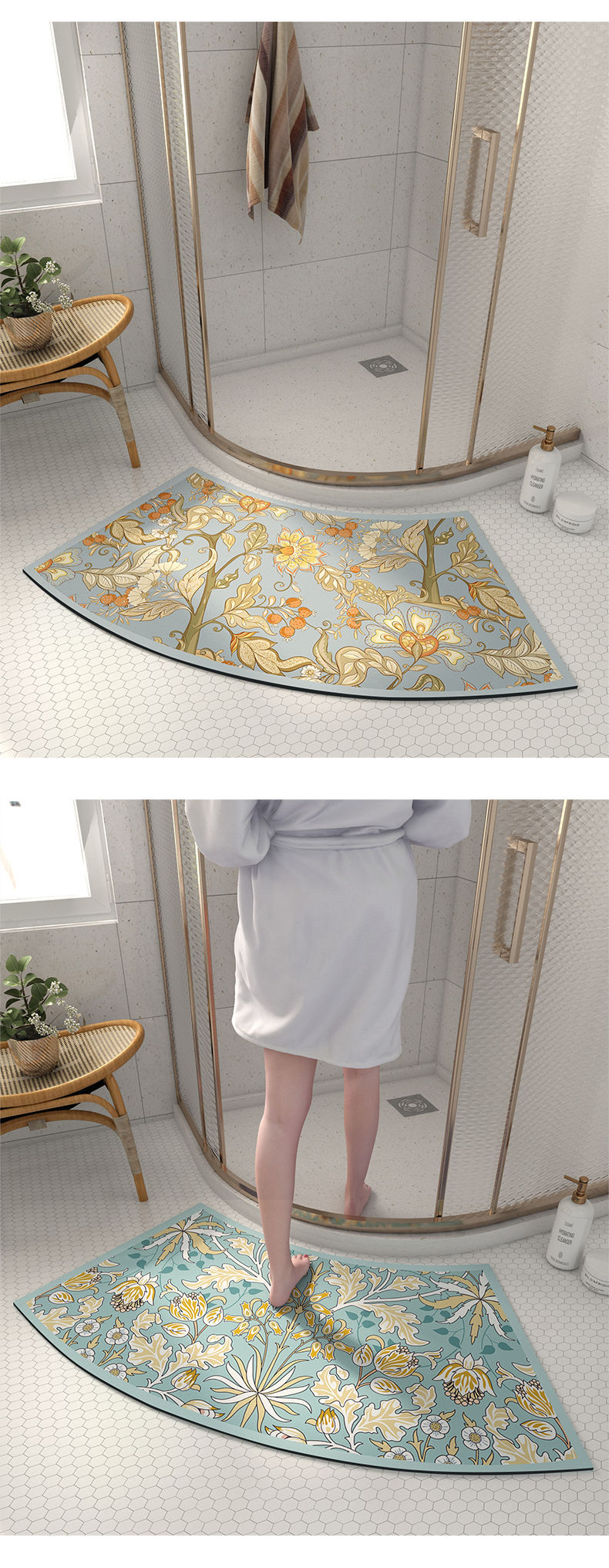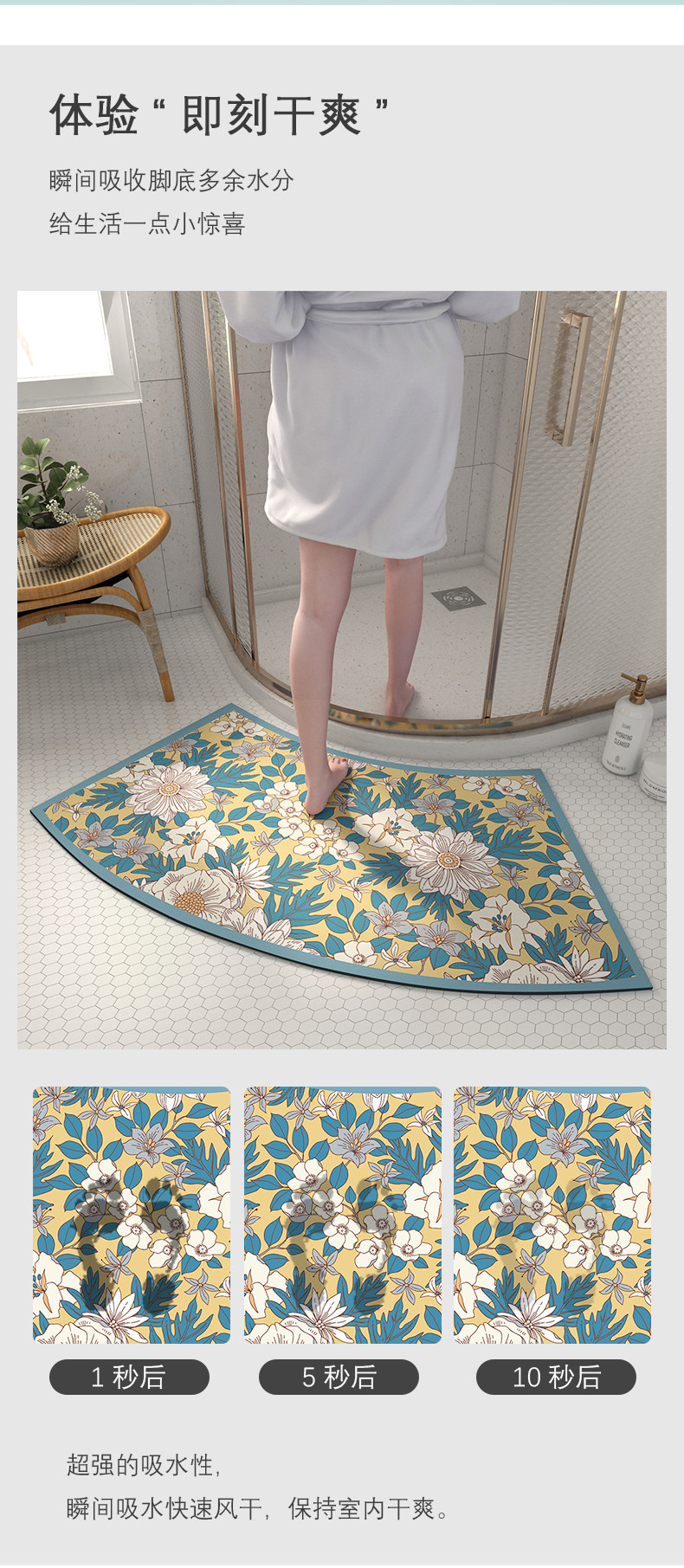 가정용 욕실 바닥 매트 규조 진흙 흡수성 쿠션 욕실 도어 매트 선풍기 모양의 호 속건 미끄럼 방지 발 매트스토어 가기