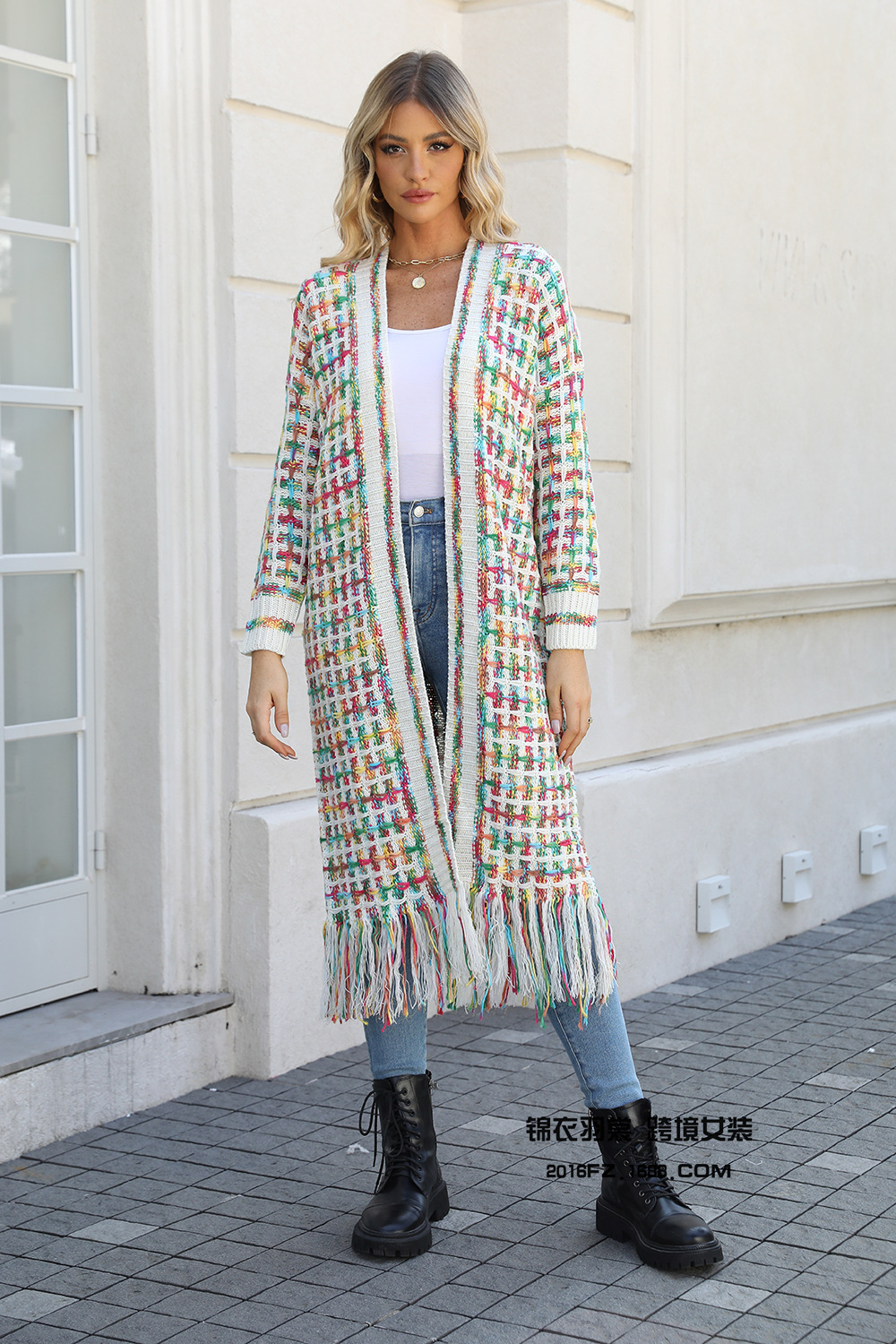 2025 년 봄 새로운 유럽과 미국의 대외 무역 플러스 사이즈 술 긴 카디건 코트 스웨터 국경 간 폭발 여성 도매