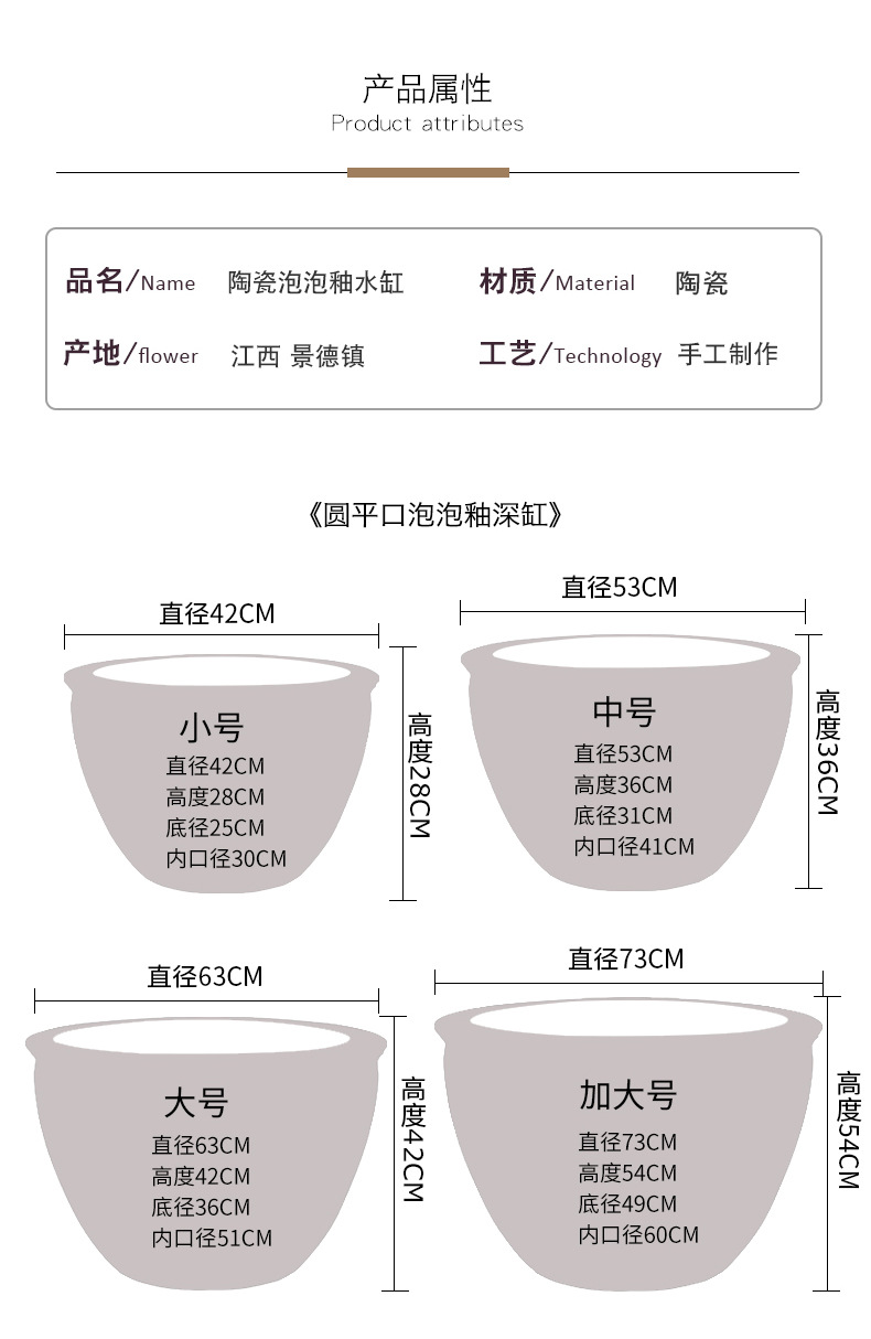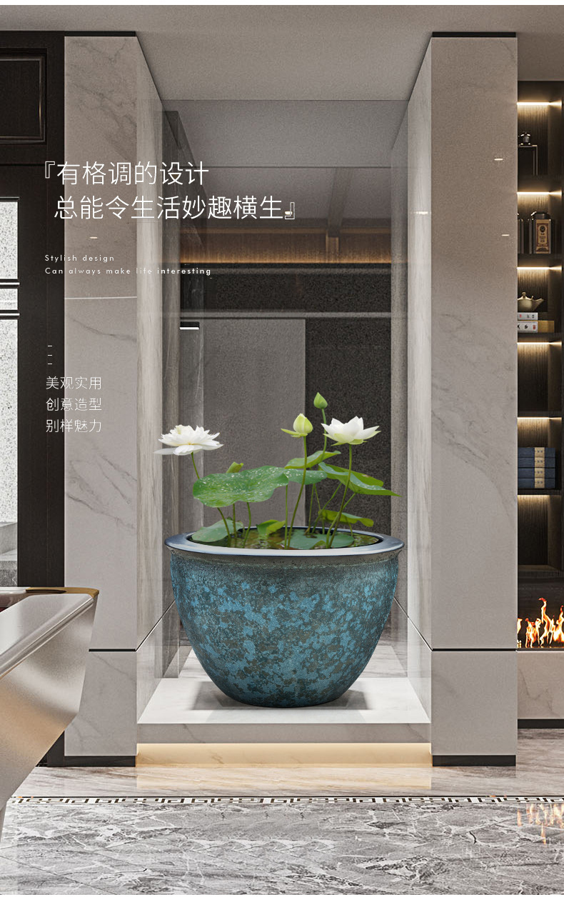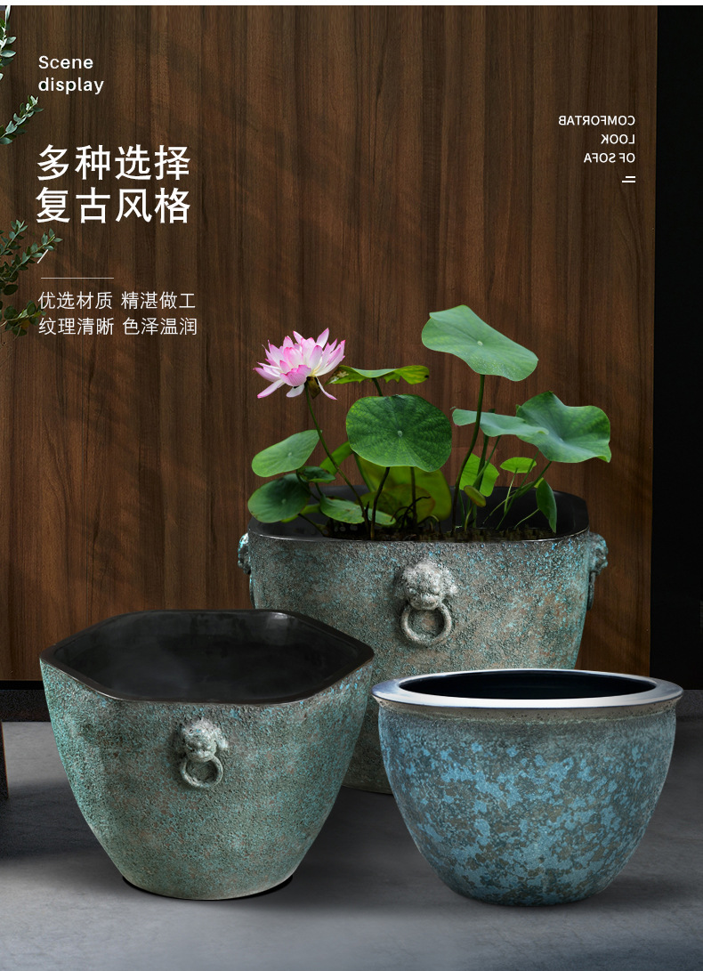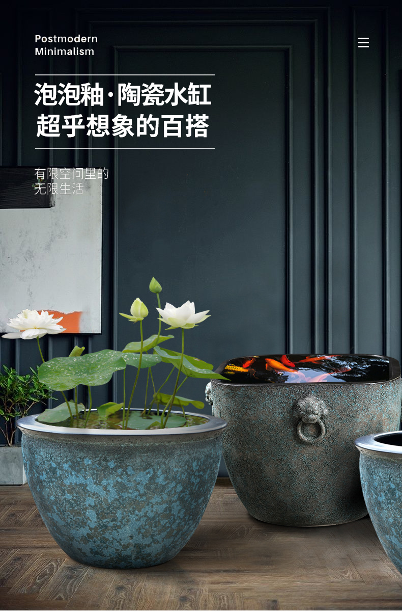 대형 탱크 초대형 빈티지 어항 맨손 탱크 대형 세라믹 물 탱크 가정용 물 저장 안뜰 Jingdezhen 거실스토어 가기
