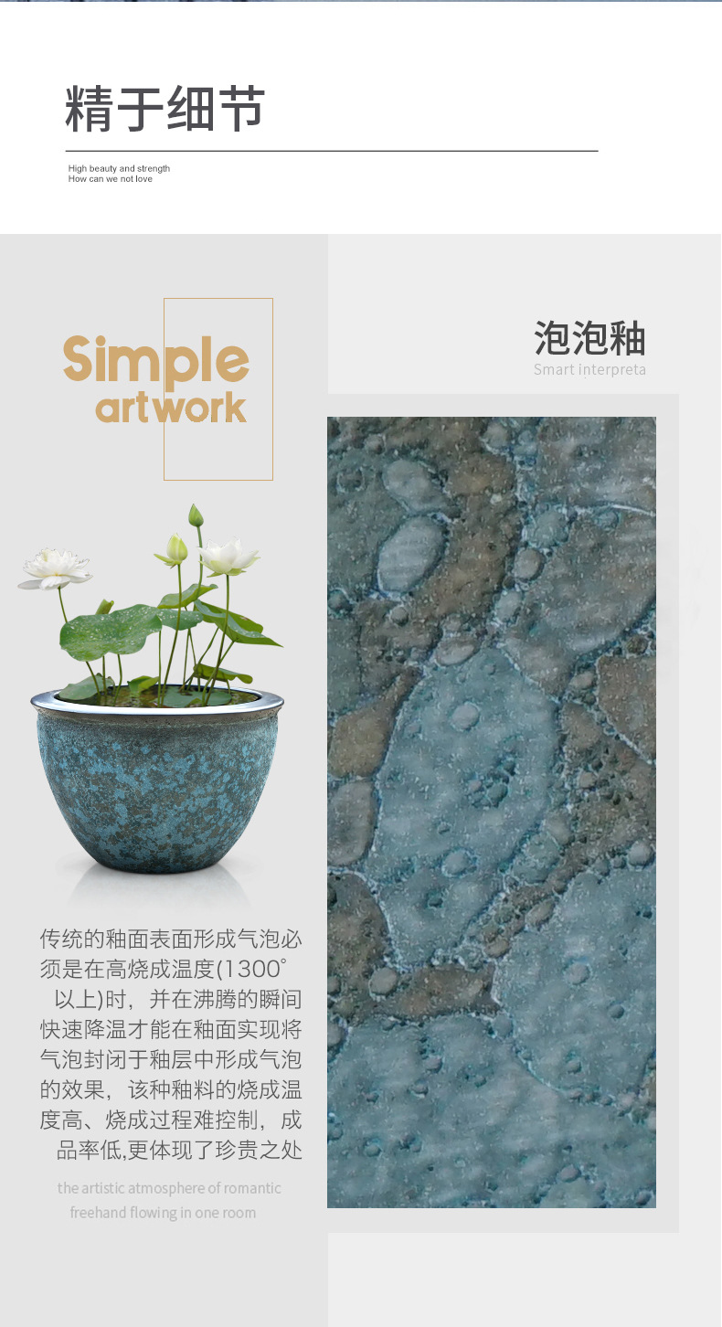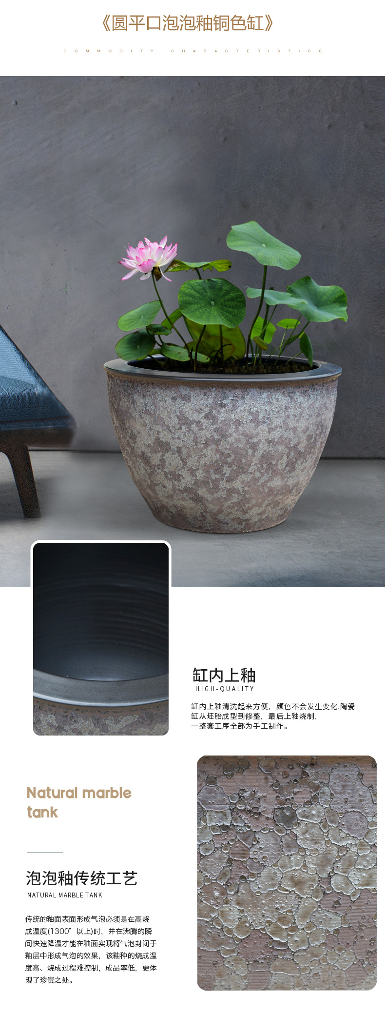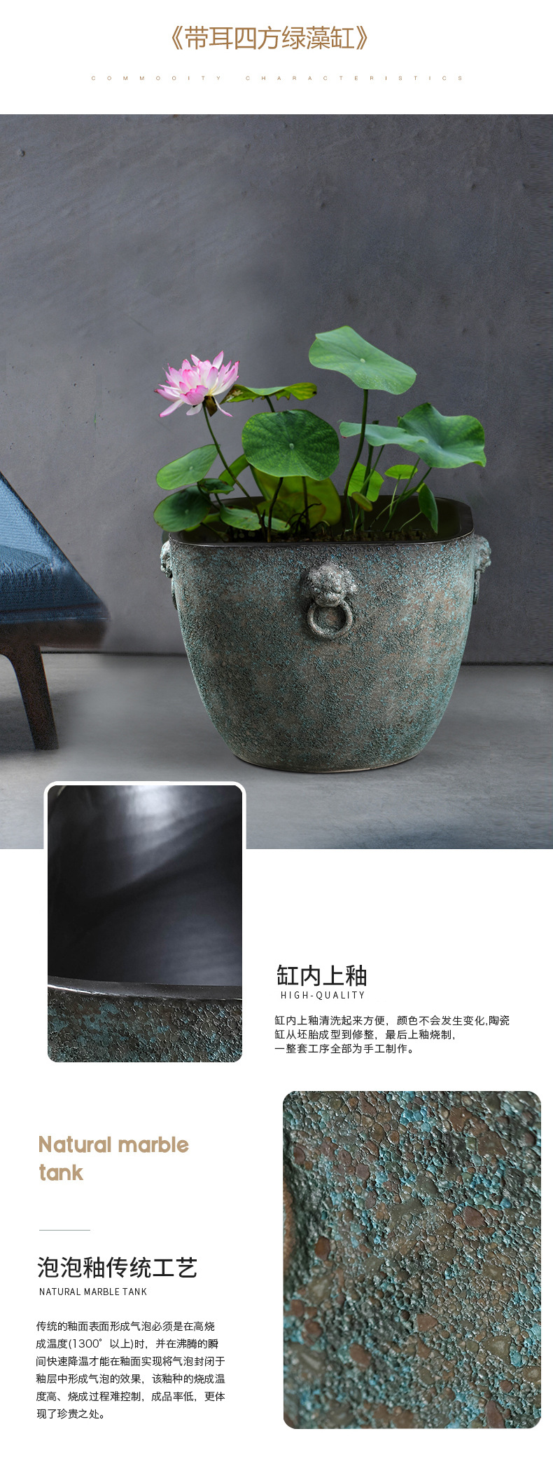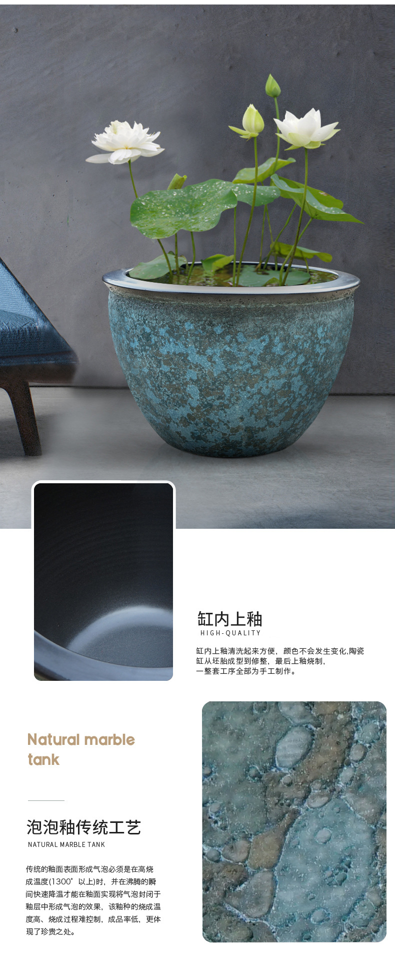 대형 탱크 초대형 빈티지 어항 맨손 탱크 대형 세라믹 물 탱크 가정용 물 저장 안뜰 Jingdezhen 거실