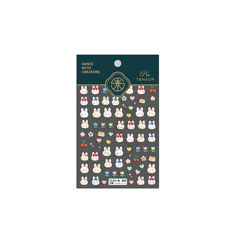 TENSOR 스테레오 5d 얇은 터프 네일 아트 스티커 접착 네일 스티커 쥬얼리 헤이, 토끼 히트 TS852