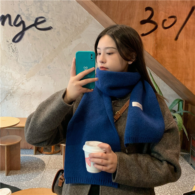 Feiding 한국 동대문 새로운 단색 한국 스타일 니트 모든 일치 모직 스카프 학생 스카프 in