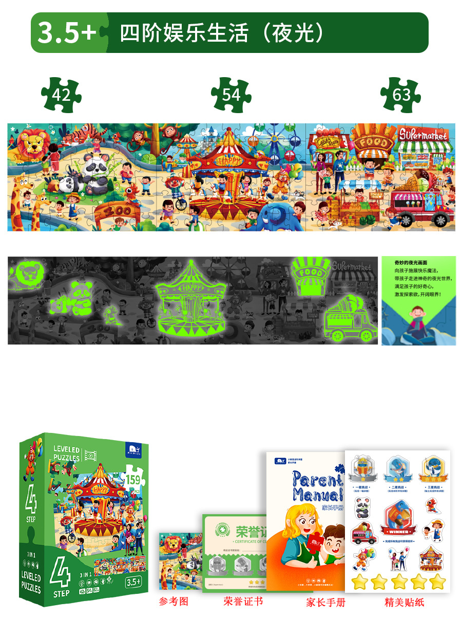 MiniWhale 어린이 조기 교육 퍼즐 고급 발광 퍼즐 아기 어린이 계몽 장난감 지식 2-10 세