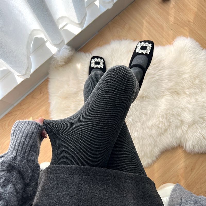 가을과 겨울 새로운 빗 코튼 수직 라이트 베이지 기모 팬티 스타킹 플랫 밀크 화이트 걸의 올 매치 레깅스 양말스토어 가기