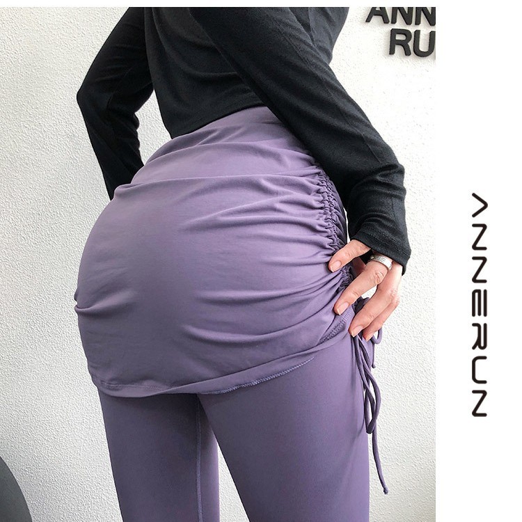 맞춤형 가짜 투피스 피트니스 퀼로트 여성용 스트레치 아우터 요가 바지 하이 웨이스트 힙 리프팅 스트랩 타이트 스포츠 바지스토어 가기