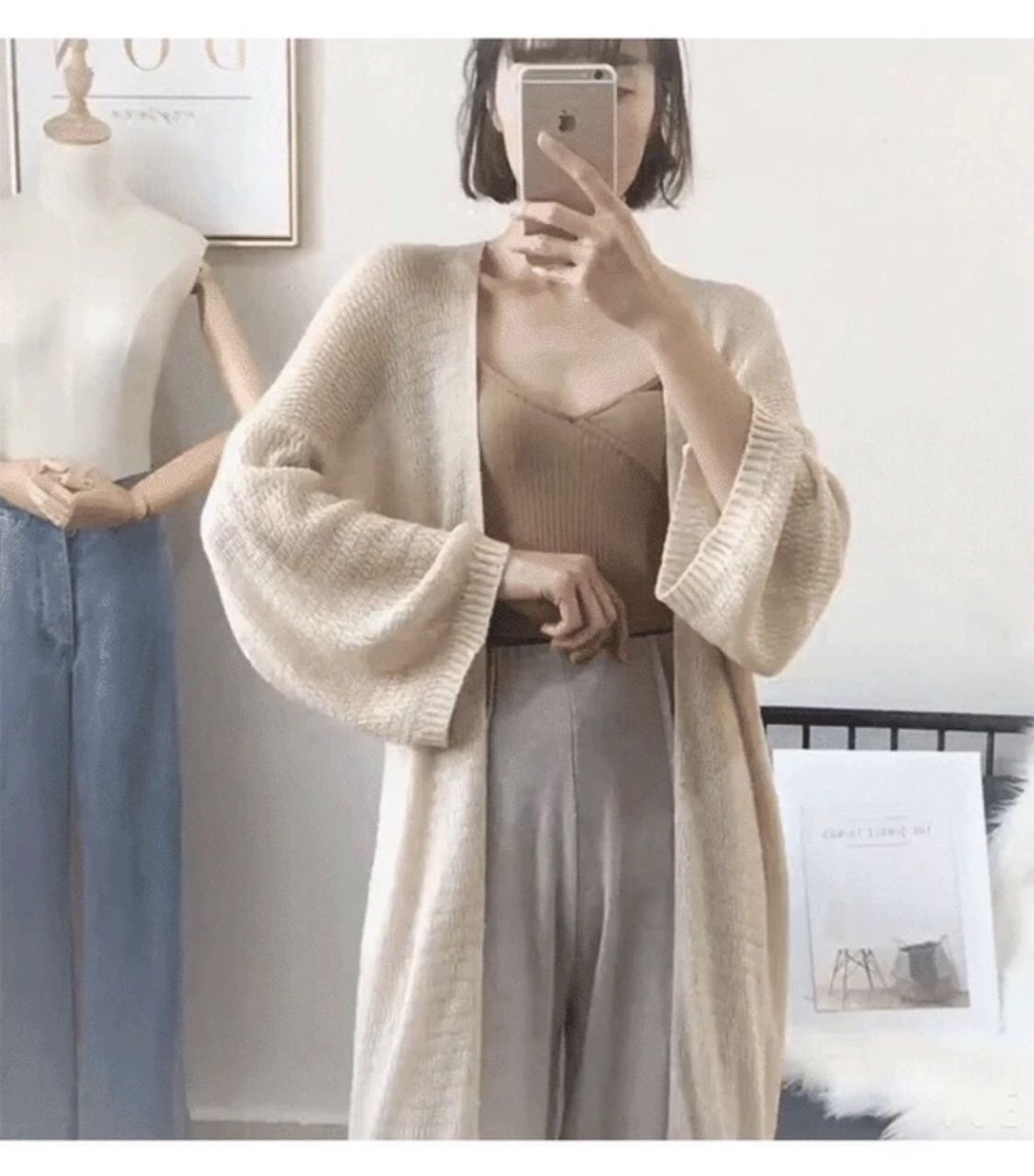 2021 여름 새로운 게으른 스타일 자외선 차단제 의류 여성용 중간 길이 니트 가디건 여성용 봄과 가을 얇은 코트 에어컨 셔츠스토어 가기