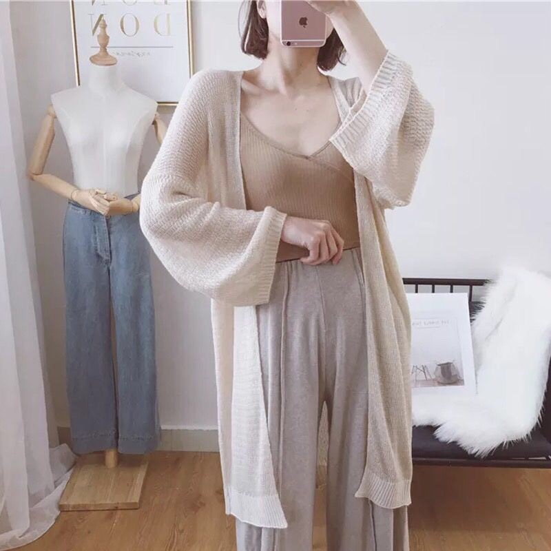 2021 여름 새로운 게으른 스타일 자외선 차단제 의류 여성용 중간 길이 니트 가디건 여성용 봄과 가을 얇은 코트 에어컨 셔츠