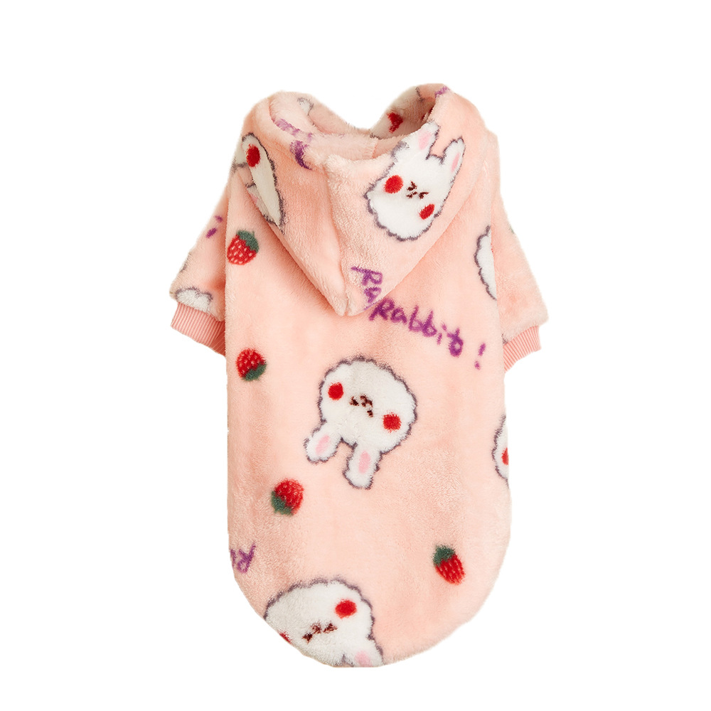 [크로스 보더 소스] 강아지 옷 가을과 겨울 새 토끼 딸기 인쇄 따뜻한 후드 스웨터 애완 동물 옷