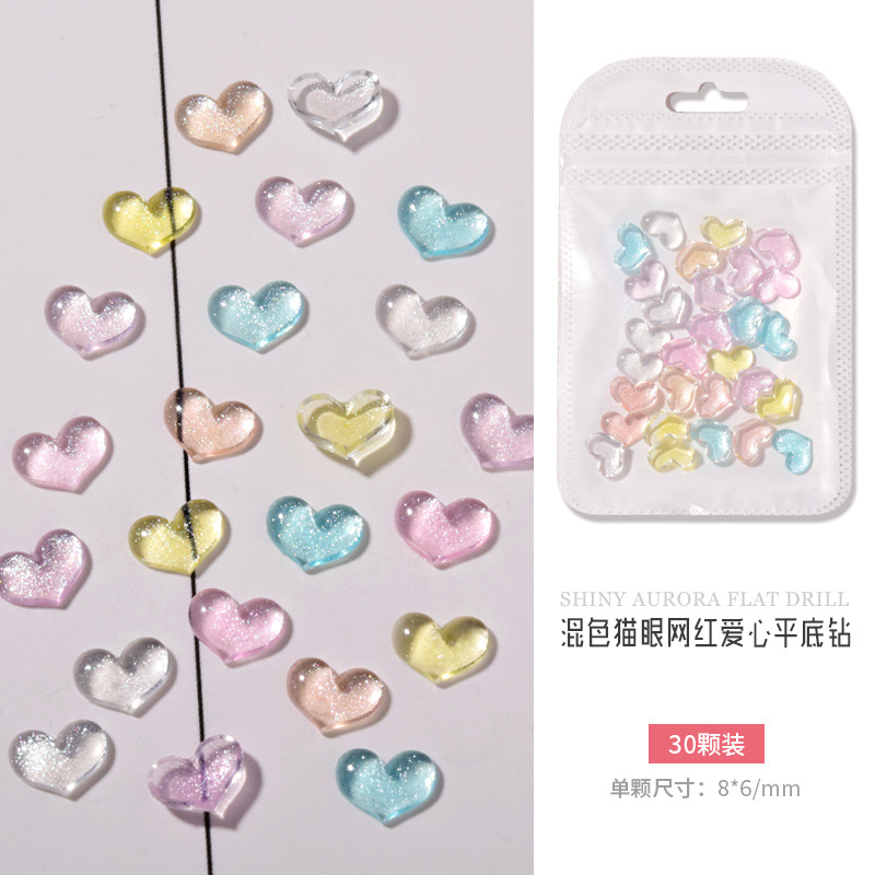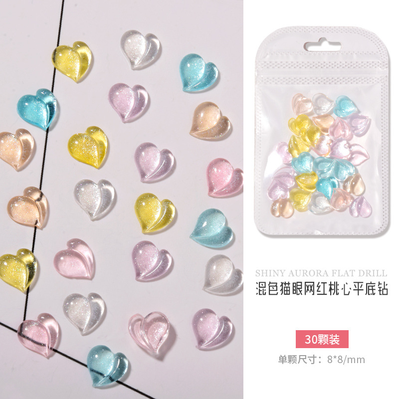 30 새로운 일본 크리스탈 고양이 눈 방귀 복숭아 네일 액세서리 그물 레드 폭발 입체 사랑 모조 다이아몬드 네일 액세서리스토어 가기