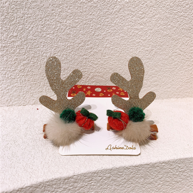 크리스마스 어린이 머리핀 세트 공주 모피 공 뿔 머리띠 귀여운 소녀 쌍 클립 헤어 액세서리 머리띠스토어 가기