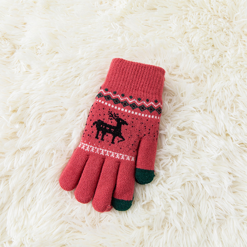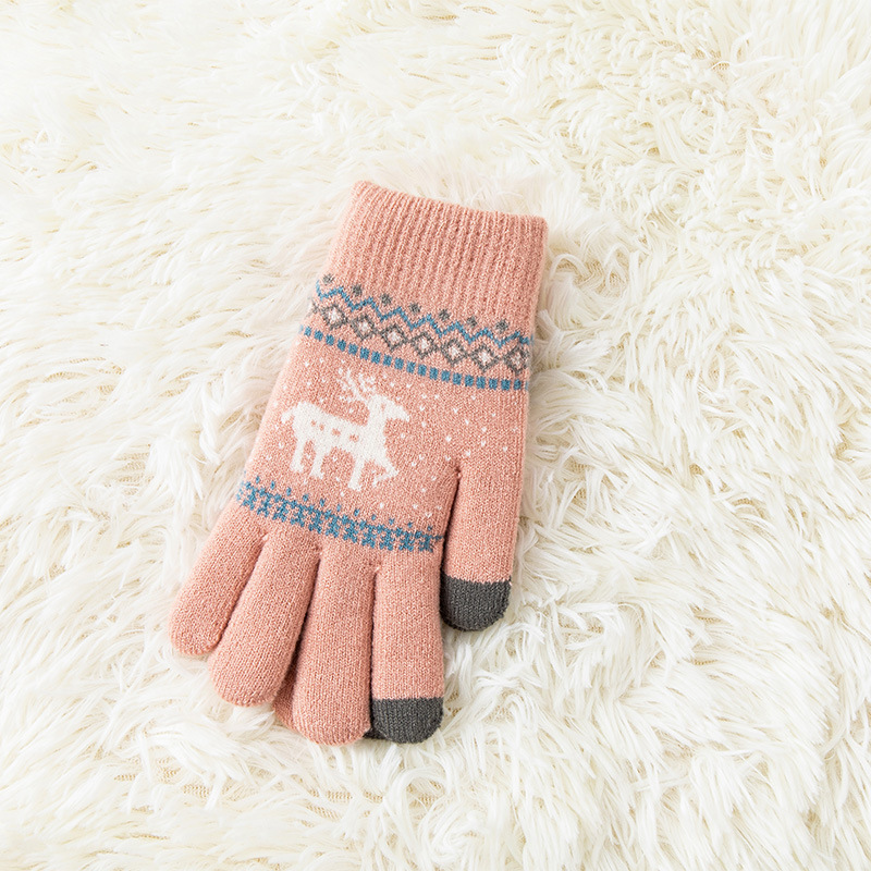 니트 터치 스크린 장갑 여자의 겨울 따뜻한 두꺼운 기모 야외 승마 자카드 귀여운 엘크 한국 장갑스토어 가기