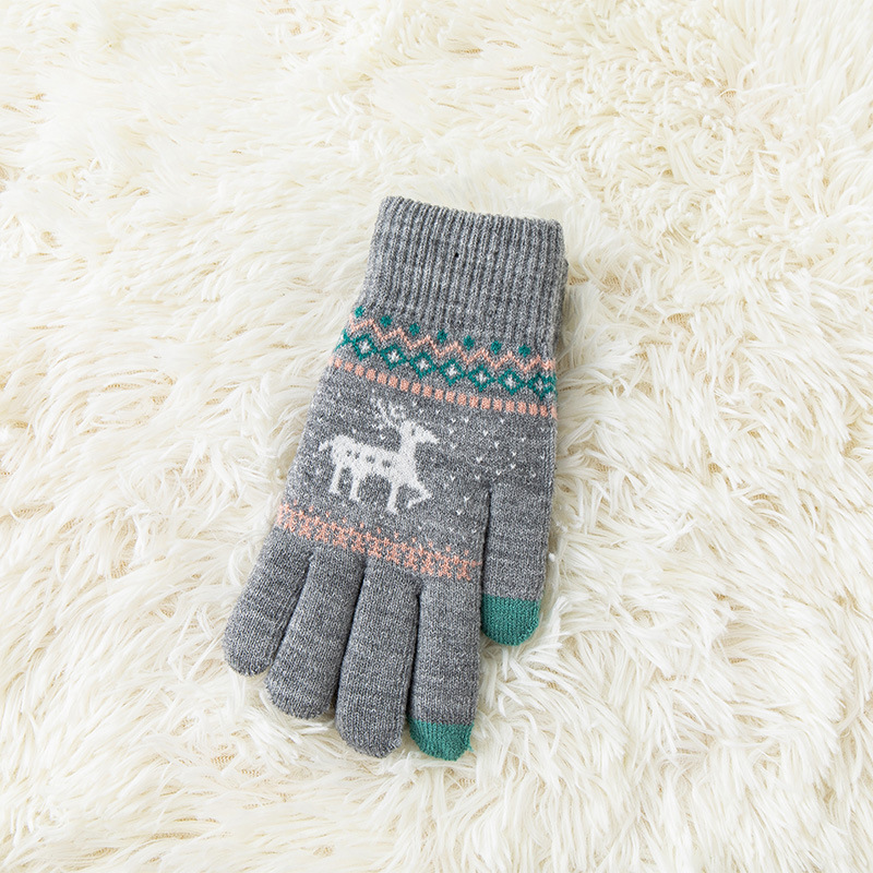 니트 터치 스크린 장갑 여자의 겨울 따뜻한 두꺼운 기모 야외 승마 자카드 귀여운 엘크 한국 장갑